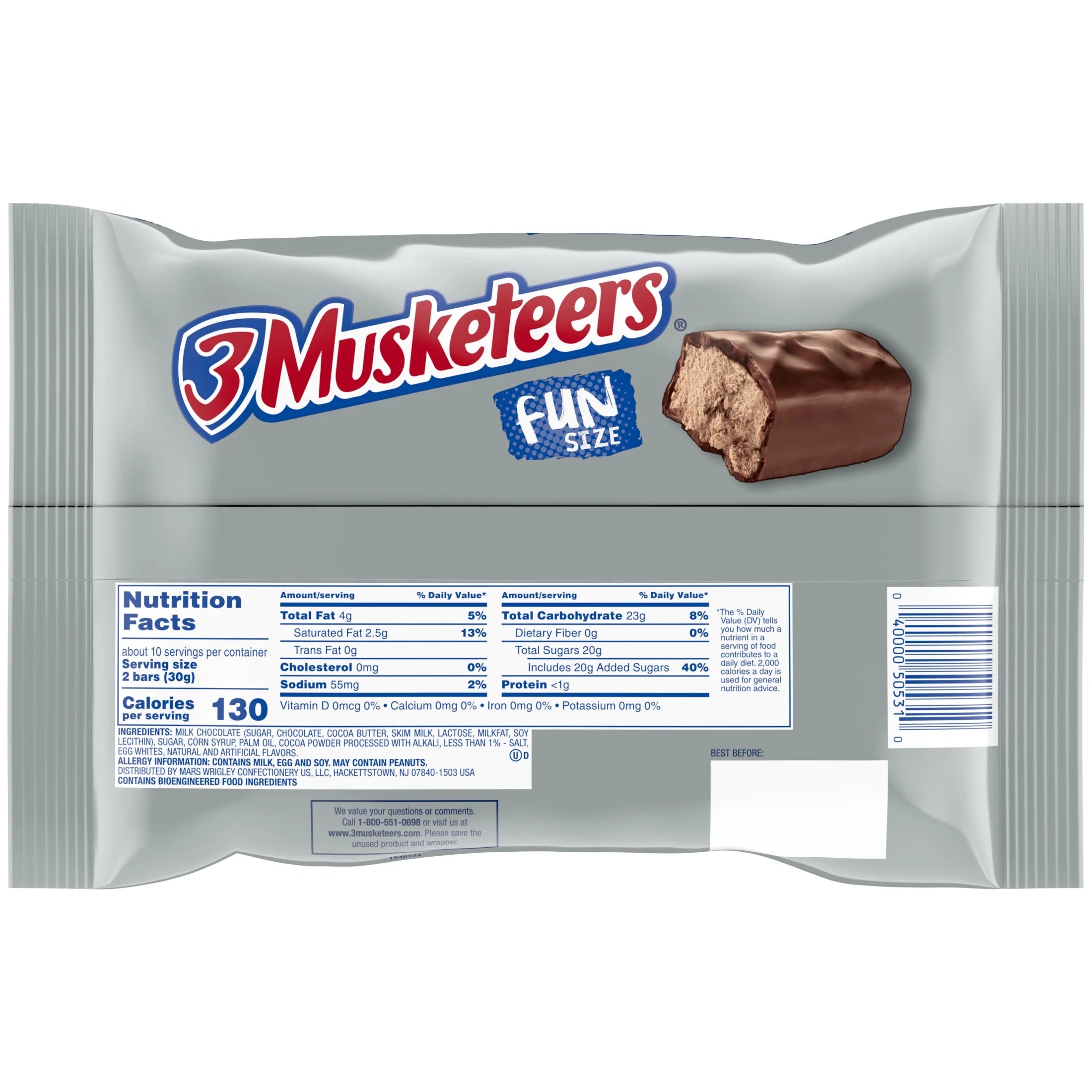 - Contains one 10.48 ounce bag of 3 MUSKETEERS Fun Size Chocolate Bars