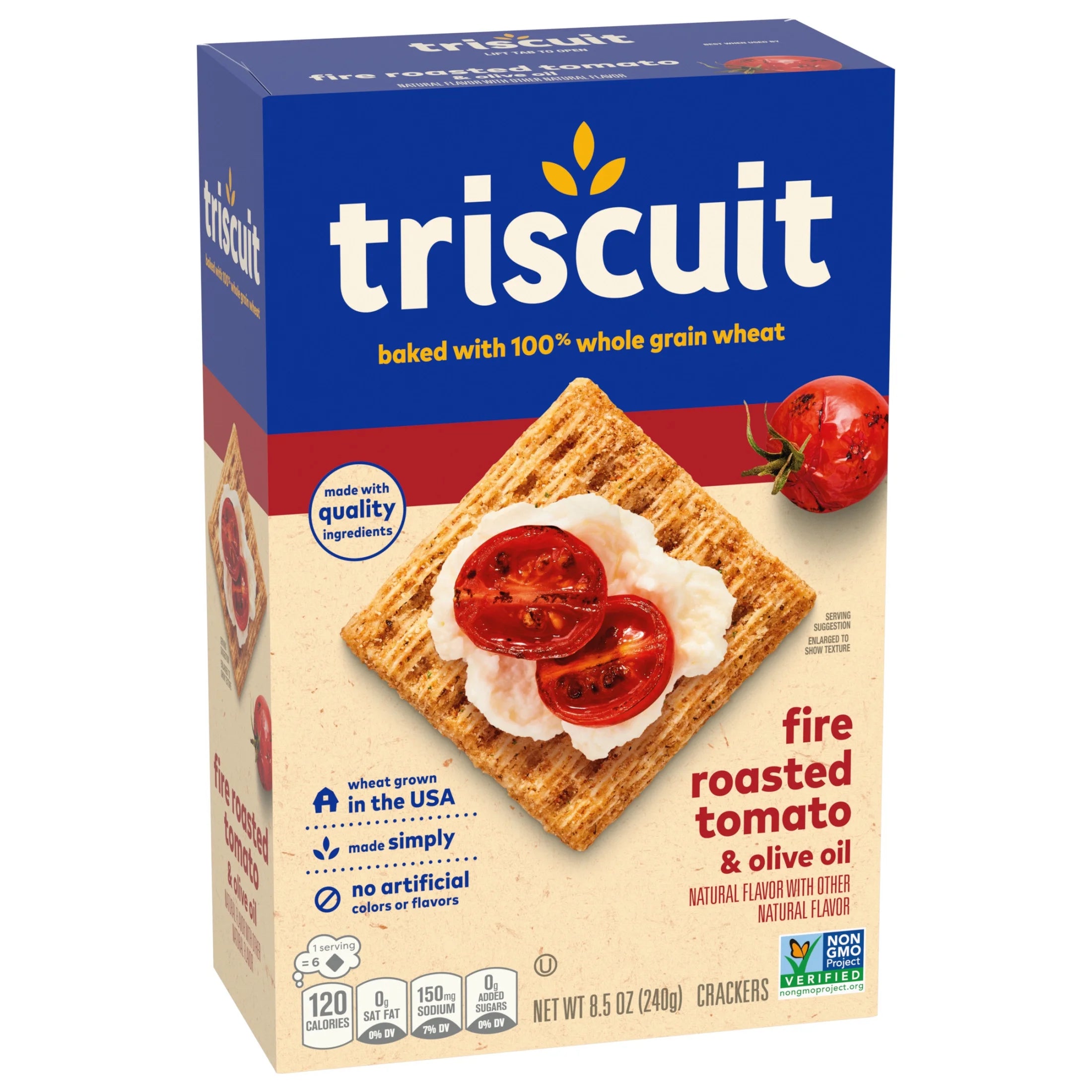 Shelf Description;Fire Roasted Tomato & Olive Oil Triscuit Whole Wheat CrackersStarts with 3 Simple IngredientsBaked with 100% whole grain wheat