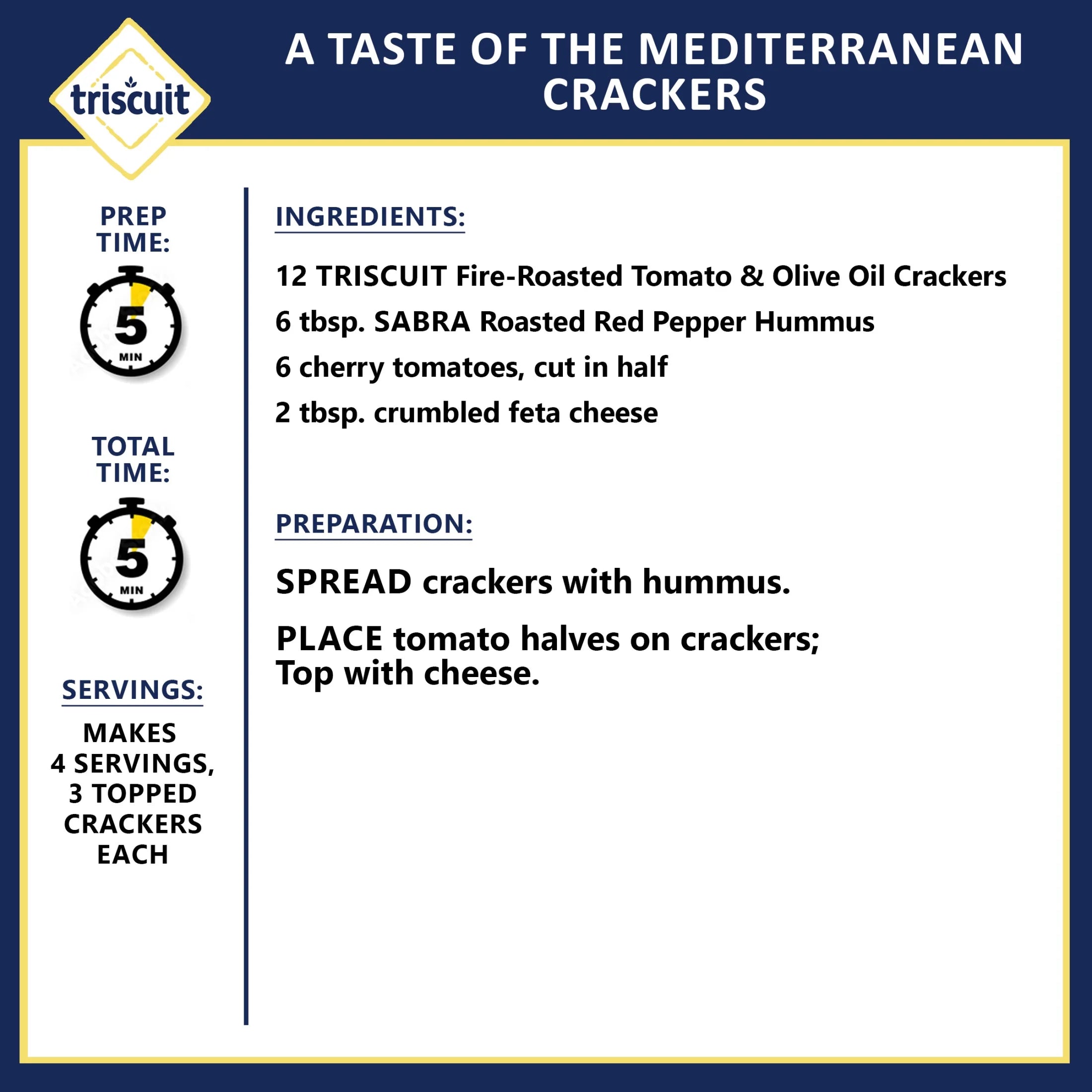 - One 8.5 oz box of Triscuit Fire Roasted Tomato & Olive Oil Whole Grain Wheat Crackers (packaging may vary)