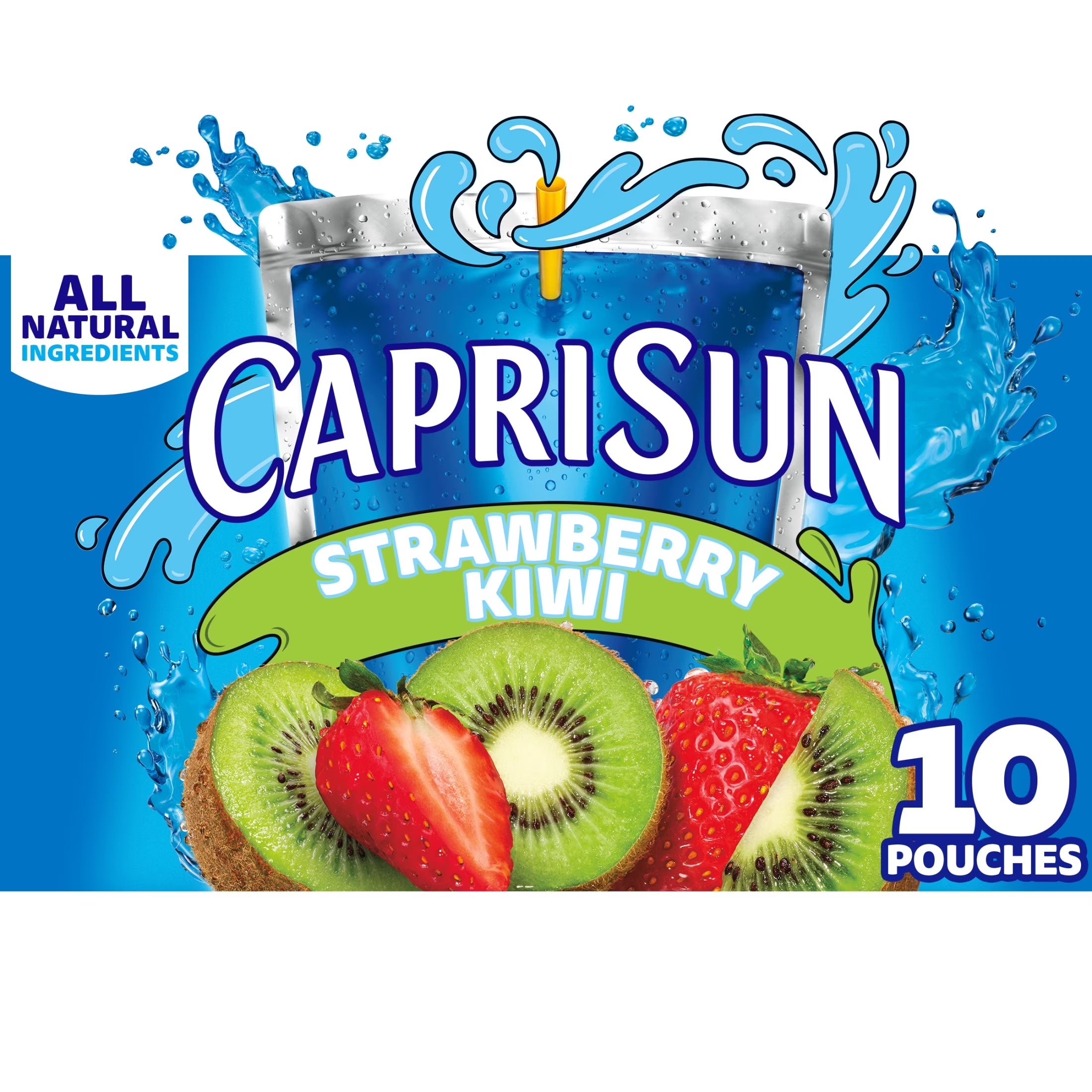 - One box of Capri Sun Strawberry Kiwi Flavored with other natural flavor Juice Drink Blend, (10 ct Box, 6 fl oz Pouches)