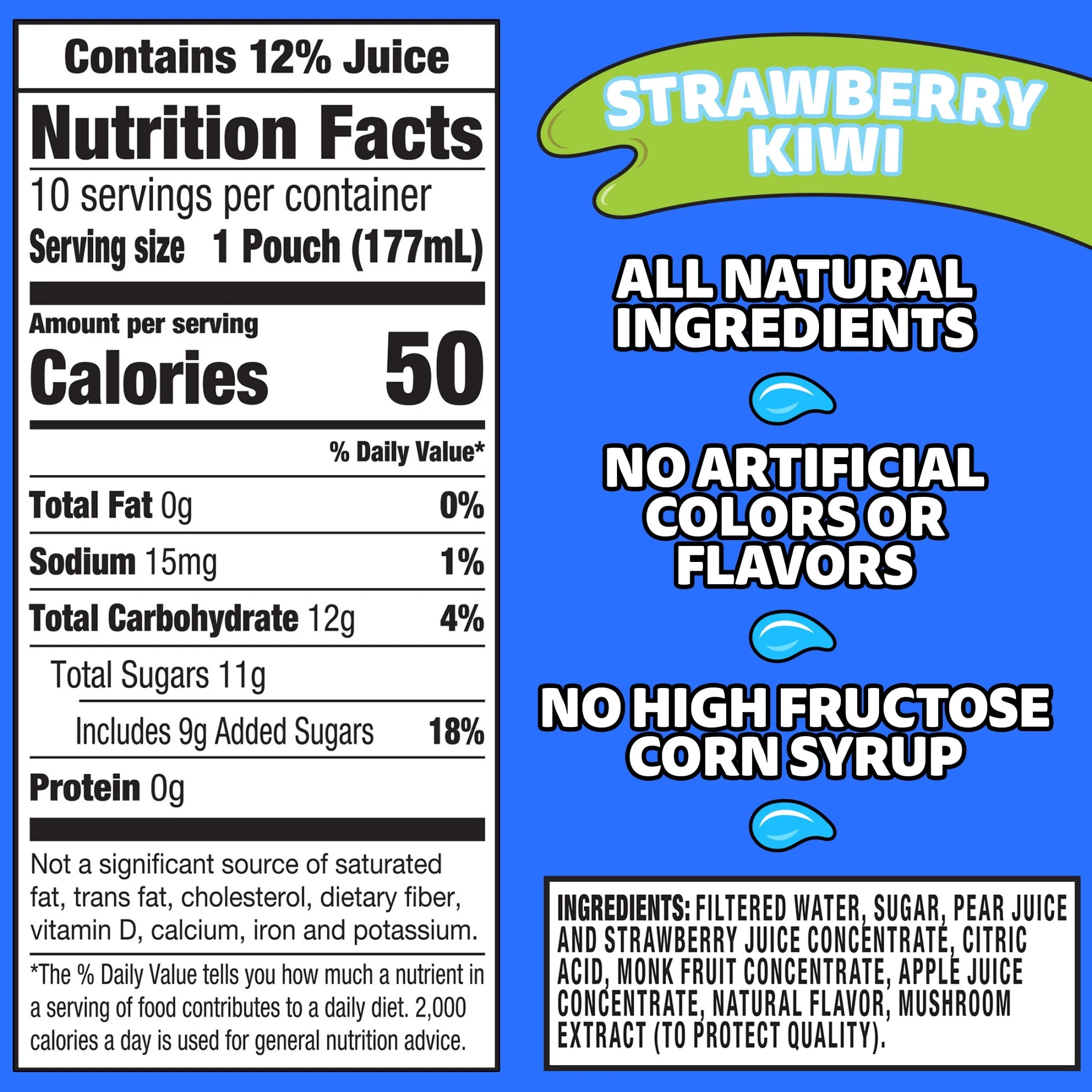 - Capri Sun Strawberry Kiwi flavored with other natural flavor juice drink blend contains no artificial colors, flavors, preservatives or high-fructose corn syrup