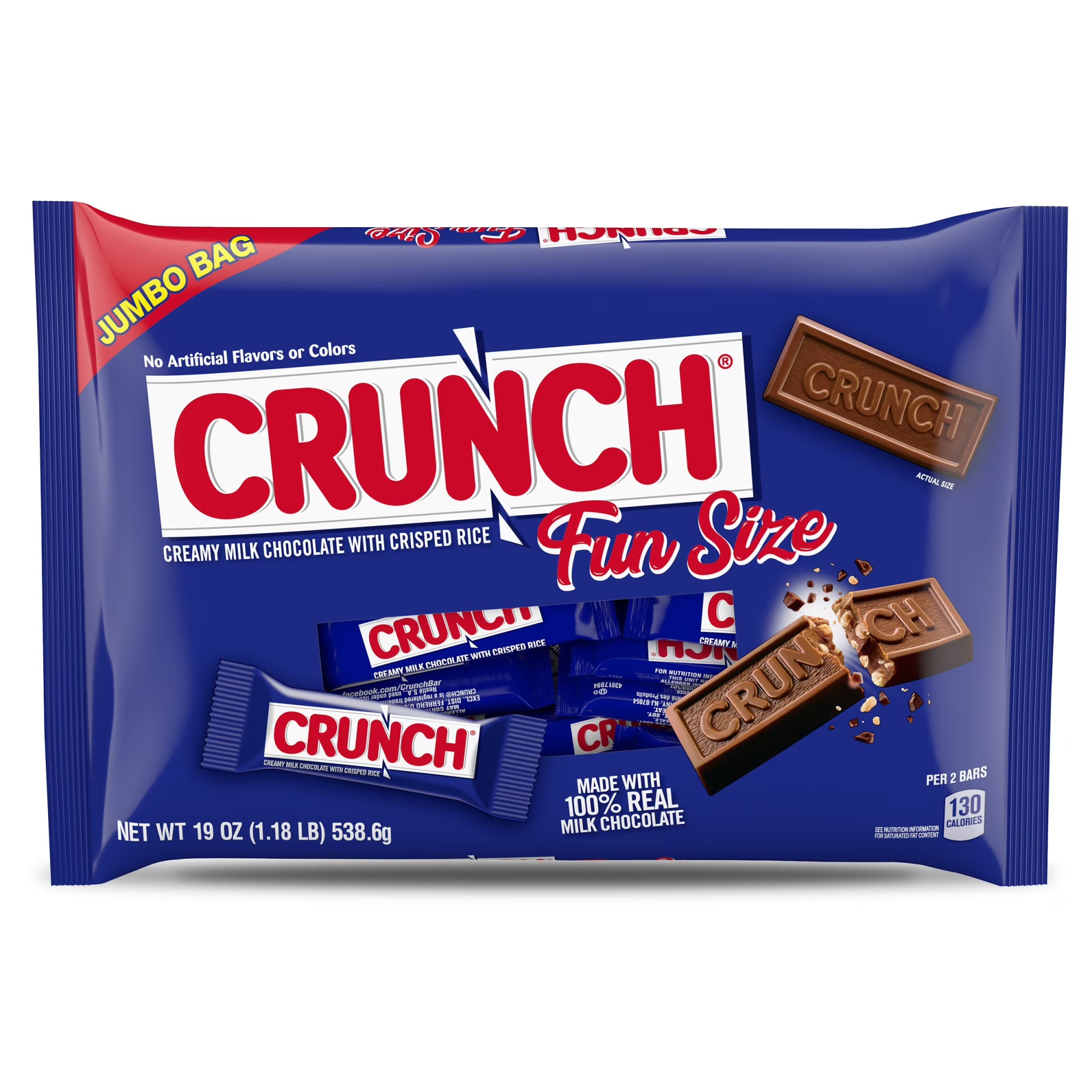 CRUNCH Fun Size Candy Bars, Creamy Milk Chocolate with Crisped Rice, Individually Wrapped Candy, Jumbo Bag, 19 oz