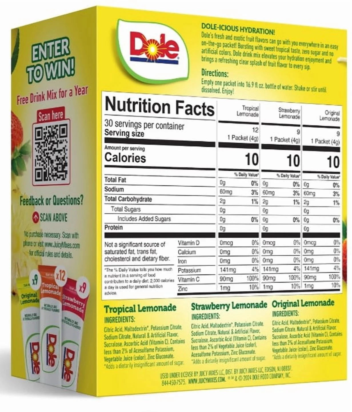 - Zero Sugar Hydration: Dole's fresh and exotic fruit flavors are bursting with sweet lemonade taste without any sugar.