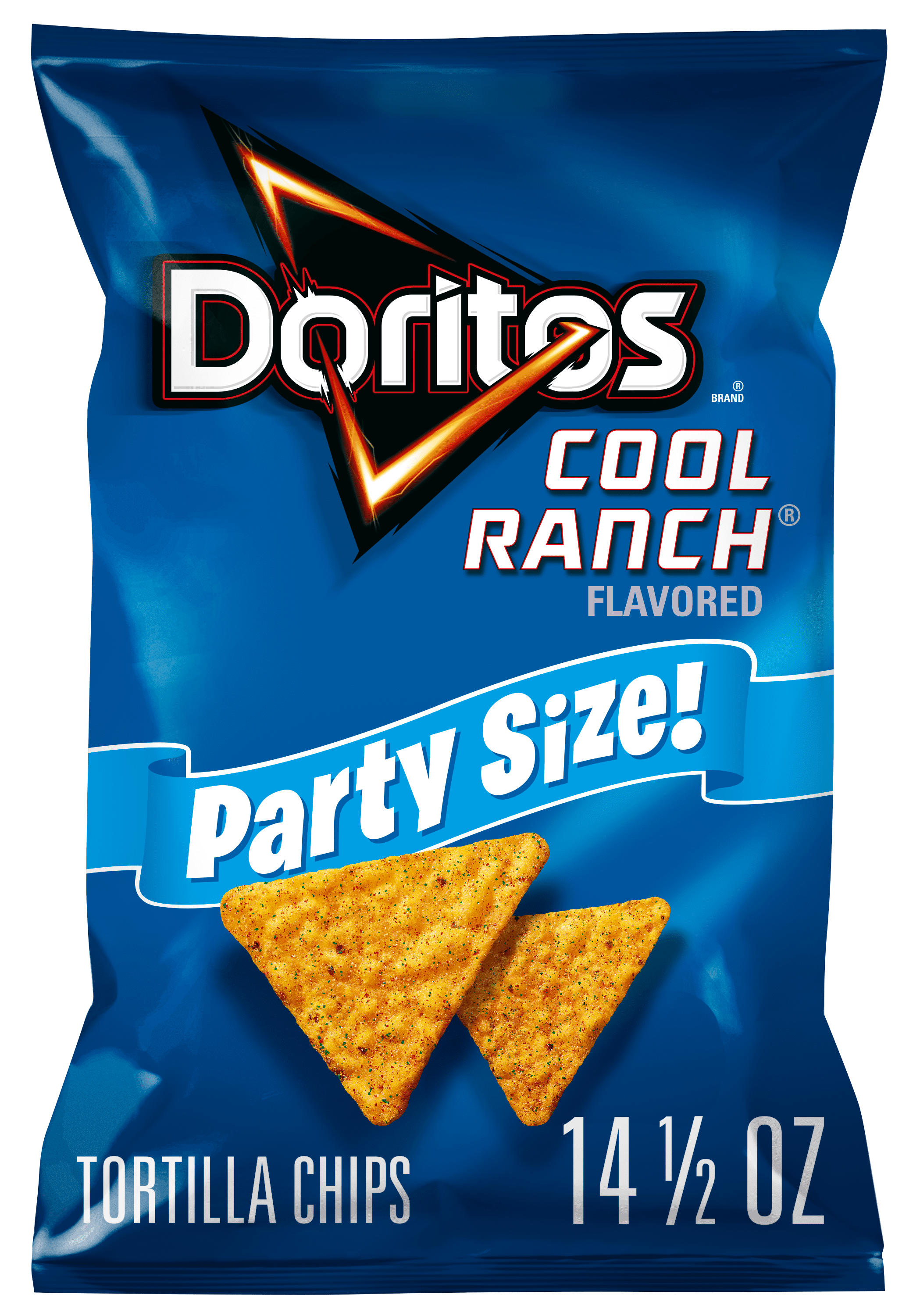 With seasoning that has a punch of zesty goodness, Doritos® Cool Ranch® has pleased the masses for decades. It doesn't get more classic than a blue DORITOS® bag! Doritos Tortilla Chips Cool Ranch Flavored (14.5 oz bag) deliver a bold and tangy twist on the classic tortilla chip. Each chip is coated with a flavorful ranch seasoning that offers a deliciously zesty taste and satisfying crunch.
