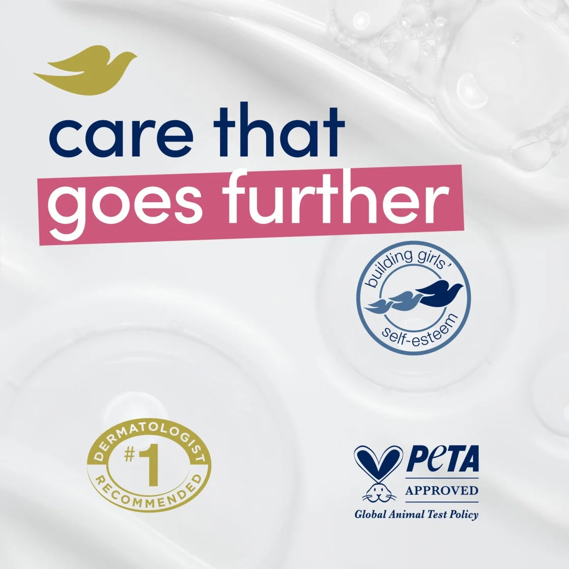- CARE WITH YOUR CLEANSER: Globally, Dove does not test on animals and is PETA Approved; Our mission is to help the next generation of women develop a positive relationship with the way they look, helping them raise their self-esteem