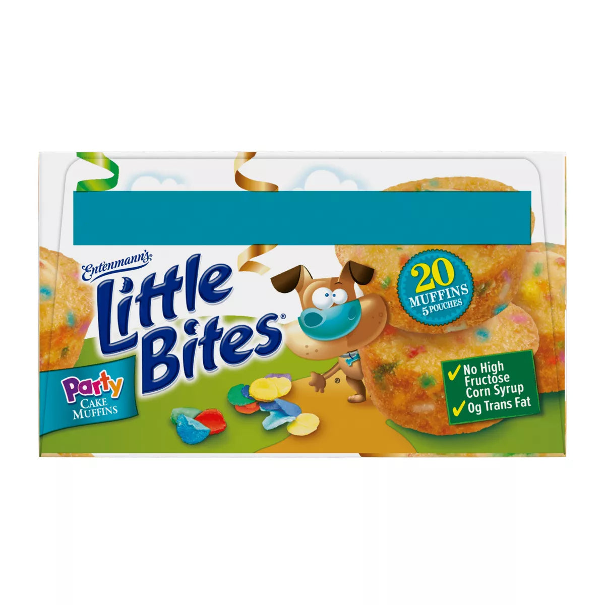 - One 8.25 oz box with five pouches of Entenmann's Little Bites Party Cake Mini Muffins