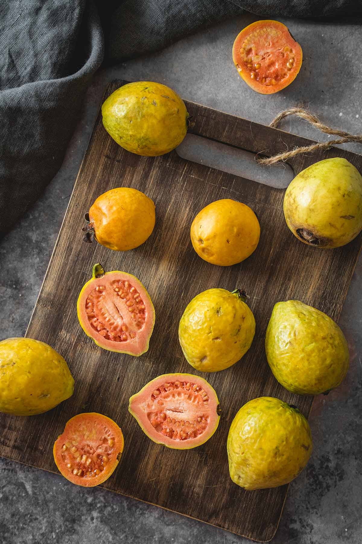 Bring this Fresh Guava into your kitchen. It's a tropical fruit that somewhat resembles a pear but has a more round shape. When unripe, guava fruit has a green color, and once it ripens that shade of green changes into yellow. They give off an aroma that is somewhat similar to lemon rind. Depending on the species, the taste of the outer skin and the pulp inside can vary from sweet to sour. Guava is rich in vitamin C, which helps you maintain a healthy immune system, and fiber, which is important to keep your digestive system regular.