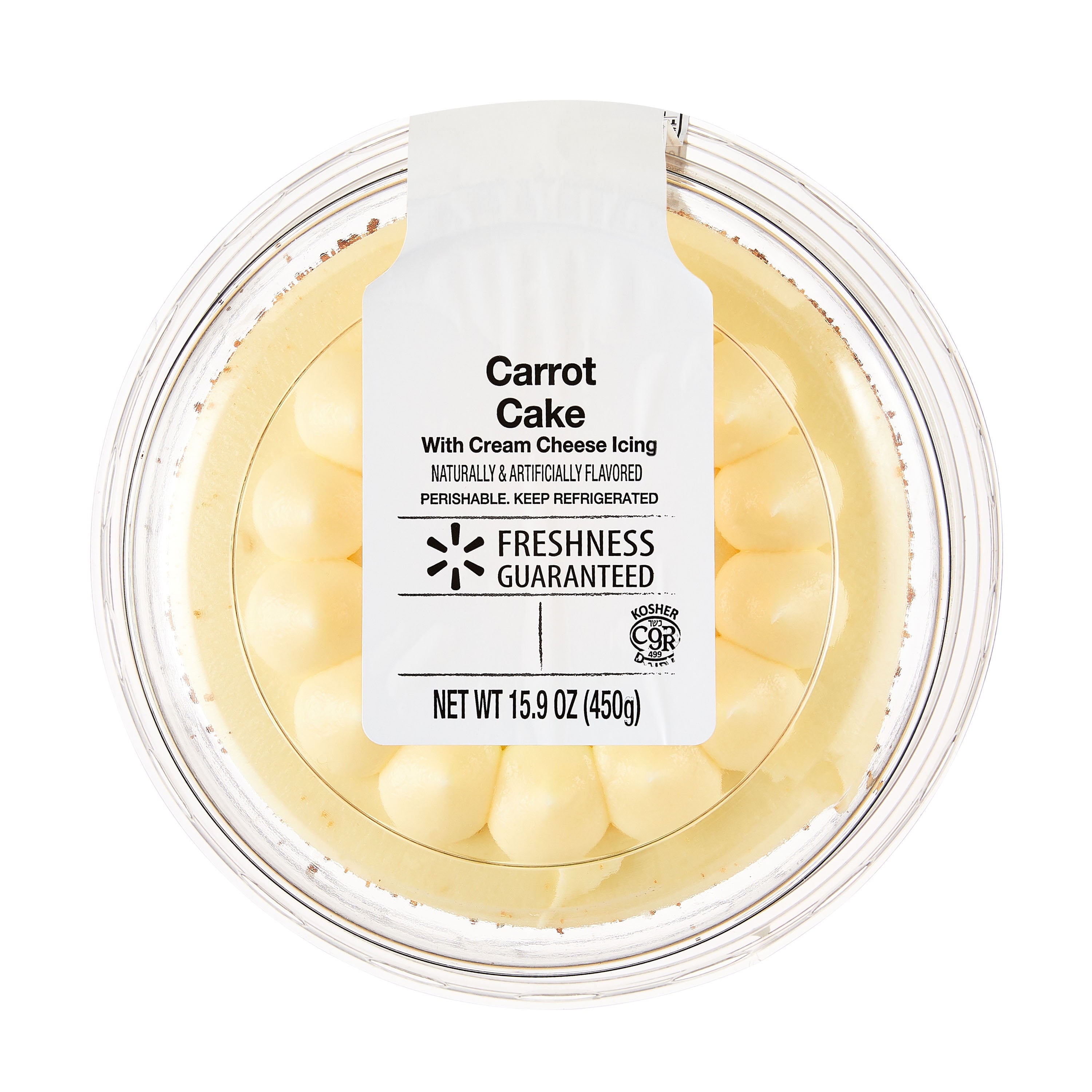 INGREDIENTS: ICING SUGAR, GRANULATED CANE SUGAR, ENRICHED BLEACHED WHEAT FLOUR (WHEAT FLOUR, NIACIN, REDUCED IRON, BENZOYL PEROXIDE, ASCORBIC ACID ADDED AS A DOUGH CONDITIONER, THIAMINE MONONITRATE, RIBOFLAVIN, ALPHA AMYLASE, FOLIC ACID, CHLORINE), SHREDDED CARROT, VEGETABLE SHORTENING (CANOLA OIL, PALM OIL, MODIFIED PALM OIL, MODIFIED PALM KERNEL OIL, MONOGLYCERIDES, POLYSORBATE 60), VEGETABLE OILS (CANOLA AND/OR SOY), CREAM CHEESE (MILKFAT, NONFAT MILK, BACTERIAL CULTURE, SALT, GUAR GUM, LOCUST BEAN GUM, WHEY), LIQUID WHOLE EGGS, LIQUID EGG WHITES, SYRUP (GLUCOSE, SUGAR, WATER, MOLASSES, SALT), WATER, FOOD STARCH-MODIFIED, BAKING POWDER (SODIUM ACID PYROPHOSPHATE, SODIUM BICARBONATE, CORN STARCH, MONOCALCIUM PHOSPHATE, CALCIUM SULFATE), SALT, NUTMEG, CARAMEL COLOR, CINNAMON, WHEY (MILK), BAKING SODA, ARTIFICIAL AND NATURAL FLAVOR, RICE STARCH, CITRUS FIBER, SODIUM ACID PYROPHOSPHATE, DEXTROSE, GLUCOSE SYRUP, MARGARINE (SOYBEAN OIL, PALM OIL, WATER, SALT, WHEY [MILK], MONOGLYCERIDES, SOY LECITHIN, NATURAL FLAVOR, ANNATTO EXTRACT [COLOR], TURMERIC [ADDED FOR COLOR], VITAMIN A PALMITATE, VITAMIN Dӡ), PARTIALLY SKIMMED MILK, MOLASSES, CITRIC ACID, VINEGAR, GUM ARABIC, CELLULOSE GUM, XANTHAN GUM, FD&C YELLOW #6, YELLOW #5 (CONTAINS TARTRAZINE), BLUE #1, BETA CAROTENE (COLOR), CLOVES, GINGER./div>