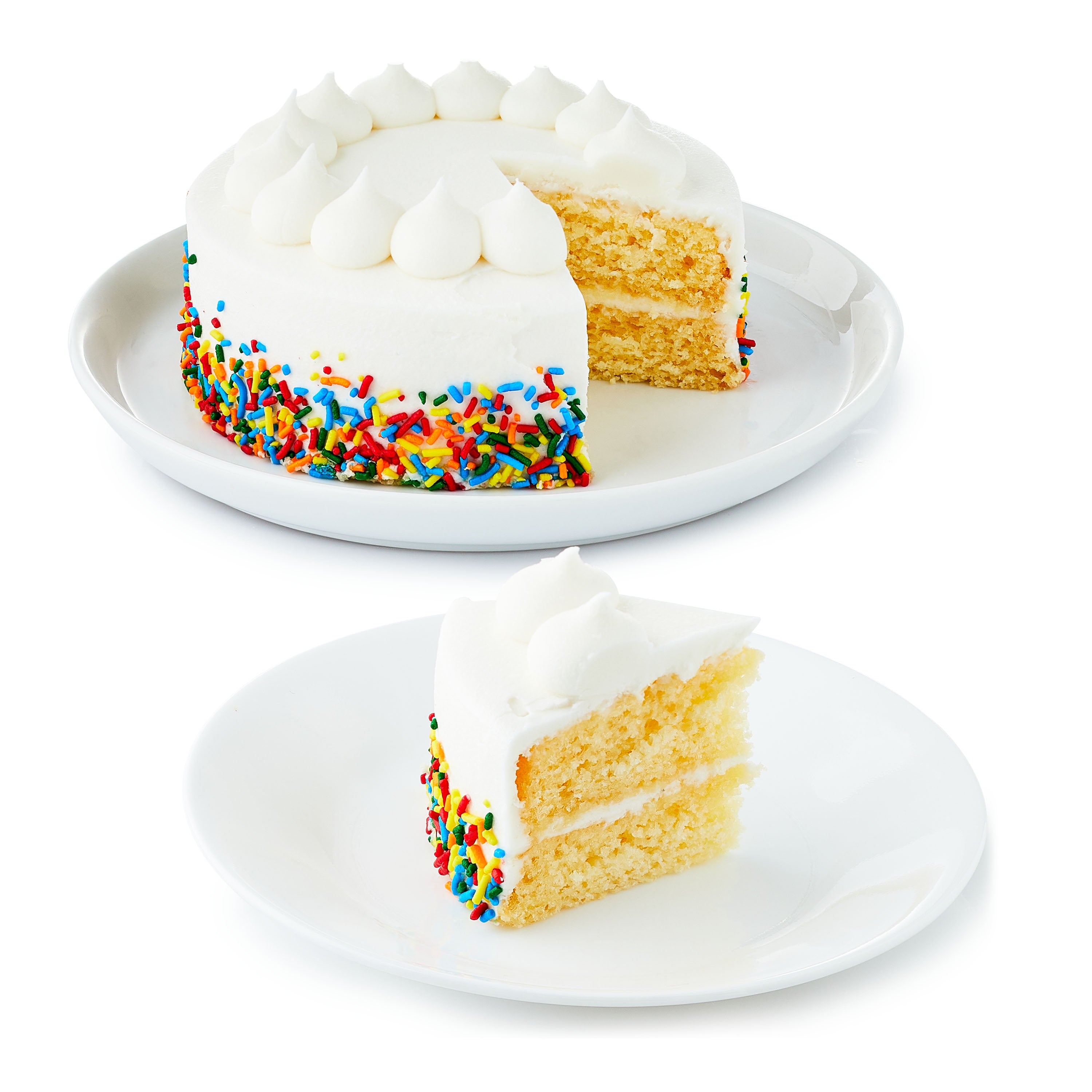 Try the delicious Freshness Guaranteed 5" Double Layer Vanilla Cake as a fun sweet treat! Two layers of moist vanilla cake with vanilla icing and sprinkles, this cake is the ultimate dessert to bring to a friend's house, to share if you're having guests over, to celebrate someone's birthday, or to enjoy as a delicious, indulgent treat on any given day. It comes with six servings per container, giving you plenty to share with friends and family. Try it with a glass of cold milk, a dollop of whipped cream, or a scoop of ice cream. Treat yourself to a bite of the Freshness Guaranteed 5" Double Layer Vanilla Cake today! Freshness Guaranteed provides you and your family with high-quality fresh food that saves you time and money, many of which are cooked fresh or prepared in stores.