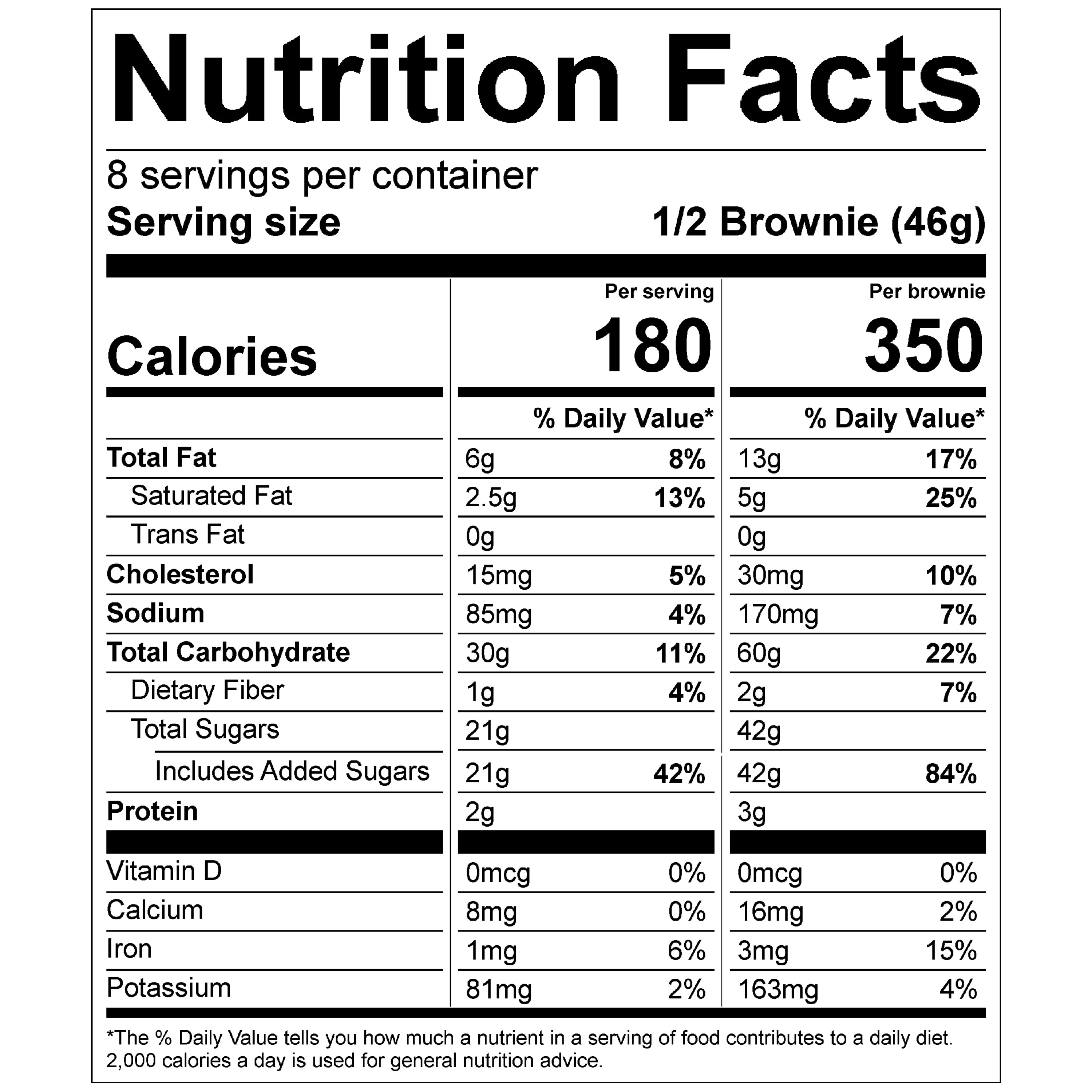- 1/2 Brownie per serving, 8 servings per container