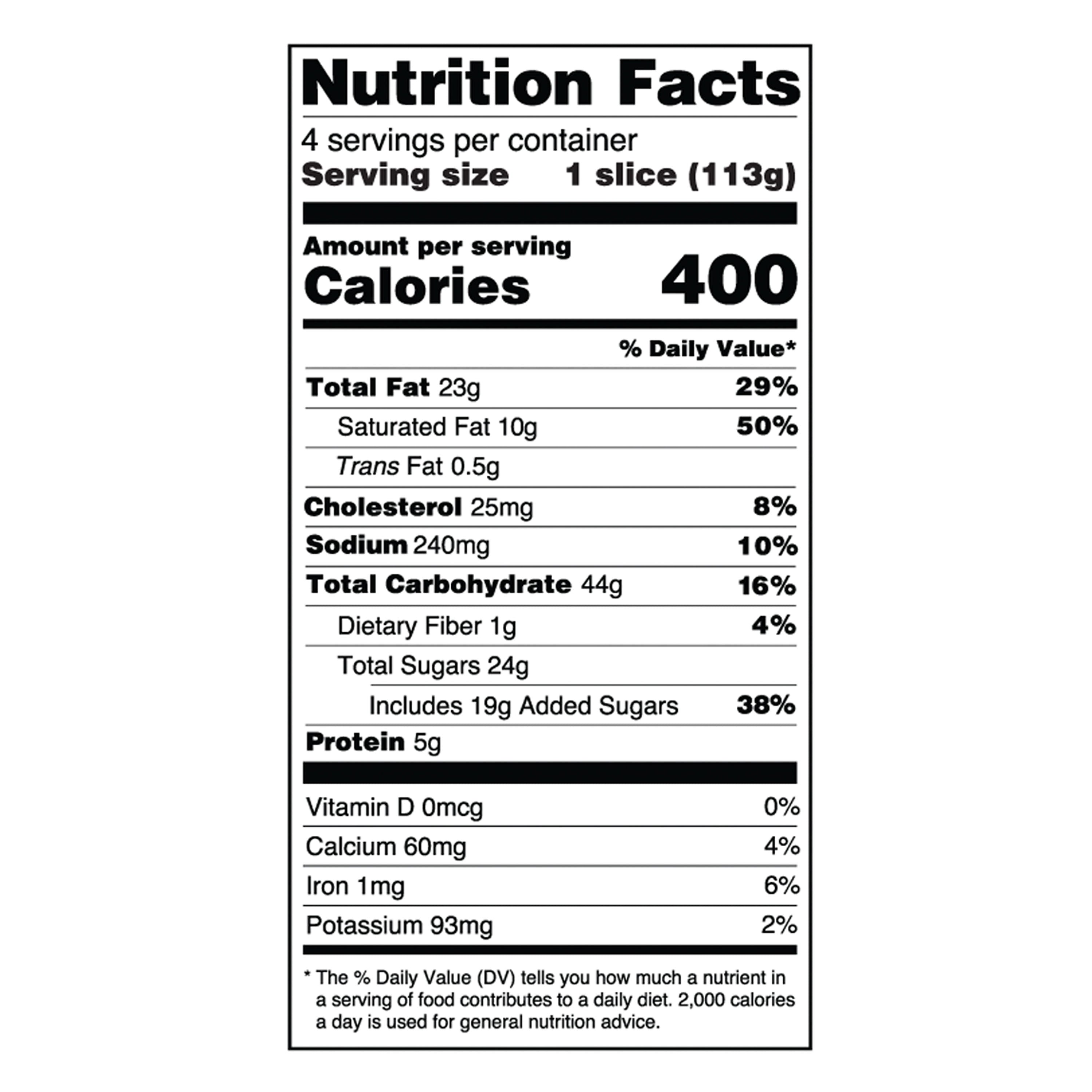 CHEESECAKE (CREAM CHEESE (CULTURED PASTEURIZED MILK AND CREAM, SALT, GUAR GUM, LOCUST BEAN GUM, XANTHAN GUM), MILK, SKIM MILK, SUGAR, PALM OIL, WATER, SOUR CREAM (CULTURED MILK AND CREAM, ENZYMES), GLUCOSE SYRUP, WHEAT FLOUR, CORNSTARCH. CONTAINS 2% OR LESS OF: NATURAL FLAVOR, MILK POWDER, WHEY PROTEIN CONCENTRATE, ENZYMES, SALT, LOCUST BEAN GUM, MONO- AND DIGLYCERIDES, APOCAROTENAL (COLOR), EGGS, XANTHAN GUM, GUAR GUM, NONFAT DRY MILK, TURMERIC, ACACIA), CRUST (WHOLE WHEAT FLOUR, MARGARINE (PALM OIL, WATER, SOYBEAN OIL, SALT, NATURAL FLAVOR, SOY LECITHIN, BETA-CAROTENE (COLOR), VITAMIN A PALMITATE), WHEAT FLOUR, SUGAR, SOYBEAN OIL, GLUCOSE SYRUP, BROWN SUGAR, HONEY, SALT, CINNAMON)./div>