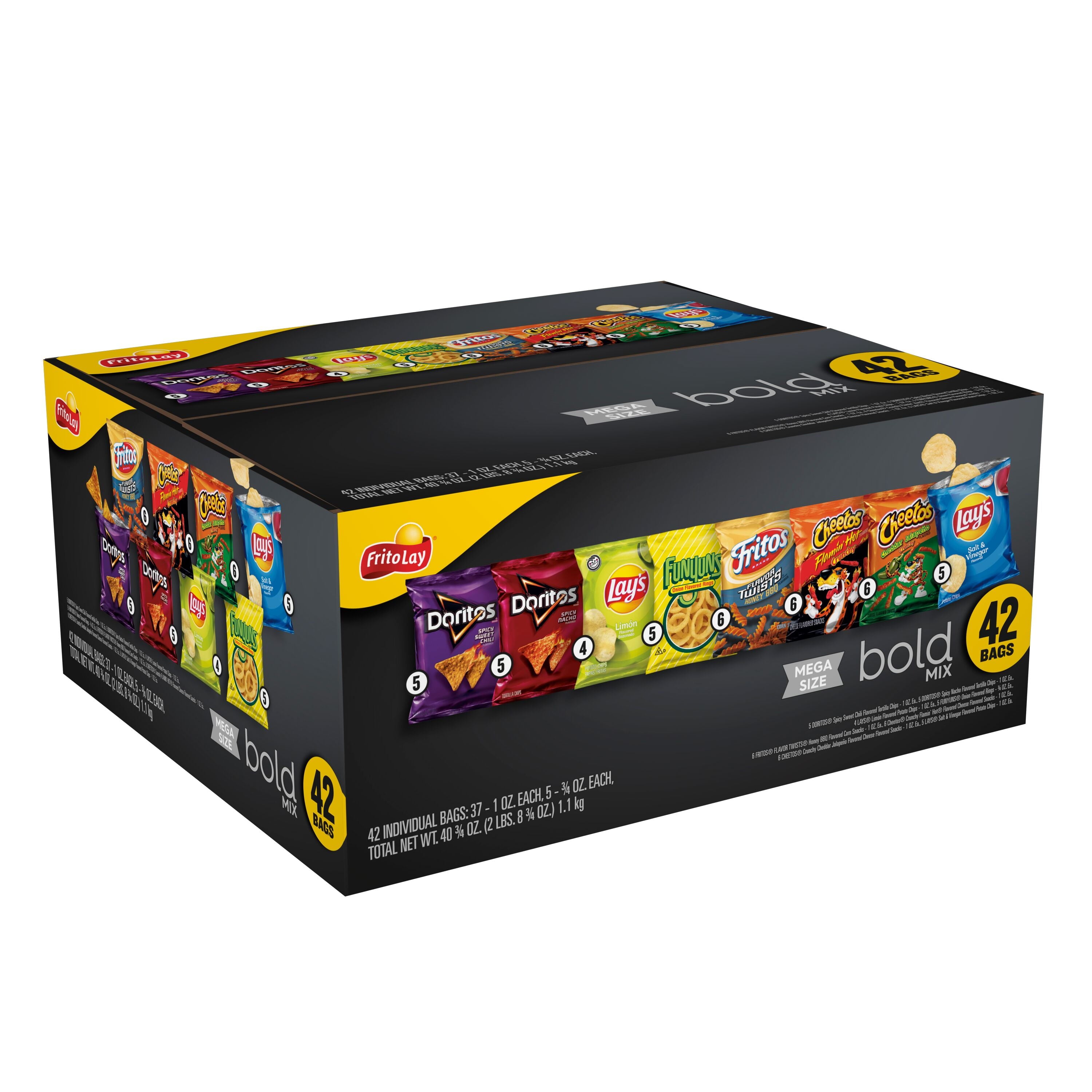 From summer barbecues to family gatherings to time spent relaxing at the end of a long day, Frito-Lay snacks are part of some of life's most memorable moments. And maybe even brightens some of the most mundane. Elevate your snack game with the Frito-Lay Snacks Bold Mix Variety Pack. This 40.75 oz assortment features 42 individually wrapped bags of bold and flavorful snacks, including fan favorites. Perfect for parties, gatherings, or stocking up for quick on-the-go bites, this variety pack ensures there's something for everyone.