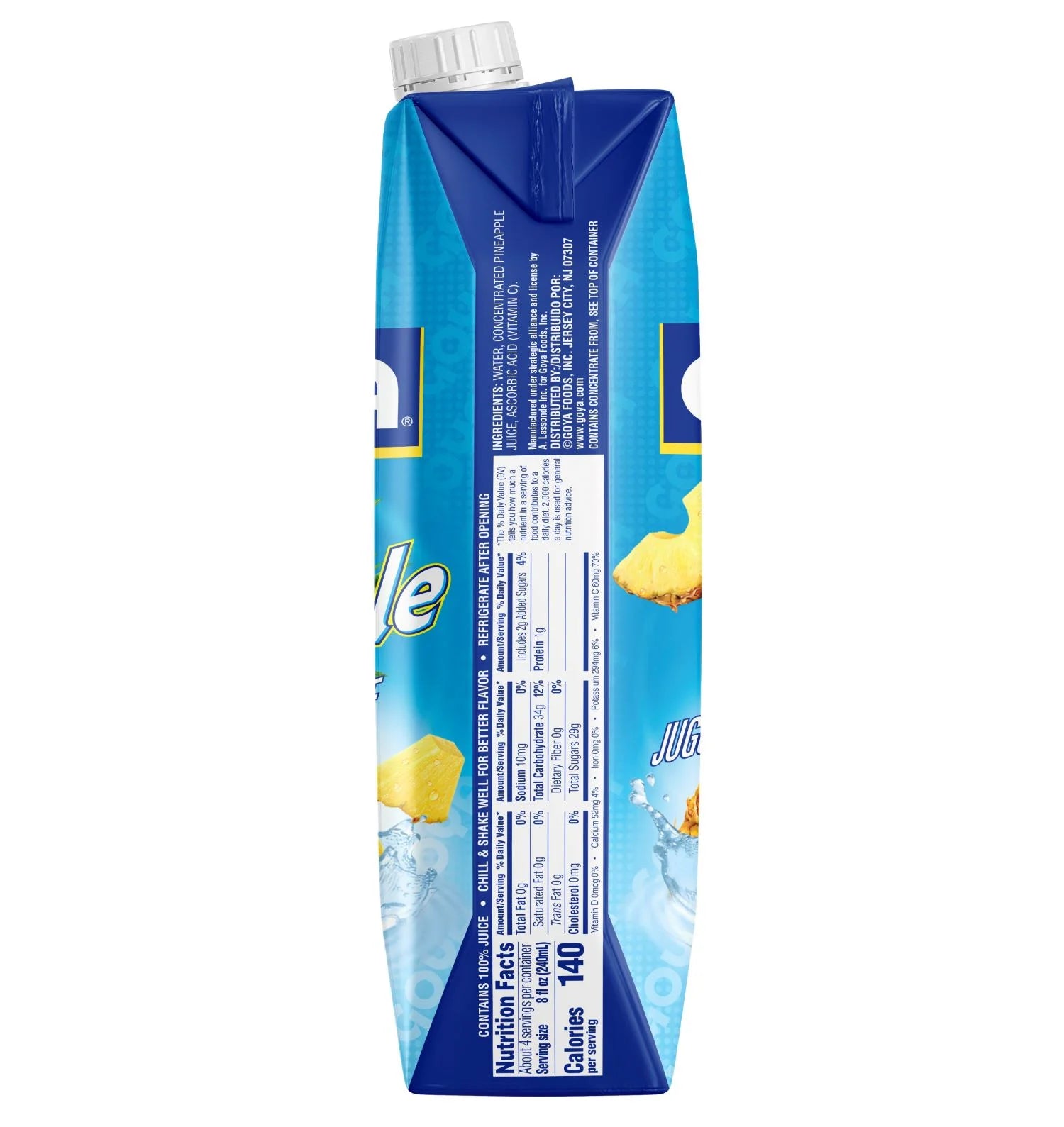 Add a touch of the tropics to your next dining experience with Goya Pineapple Juice. It is composed of 100 percent juice with vitamin C. This Goya fruit juice is an essential ingredient in a wide variety of smoothies, drinks, entrees, marinades, desserts and more. It helps you enjoy authentic Latino dishes and is quite delicious and refreshing on its own as well. This item will make an ideal addition to a well-stocked kitchen pantry. It is also handy as a healthy treat on the go.