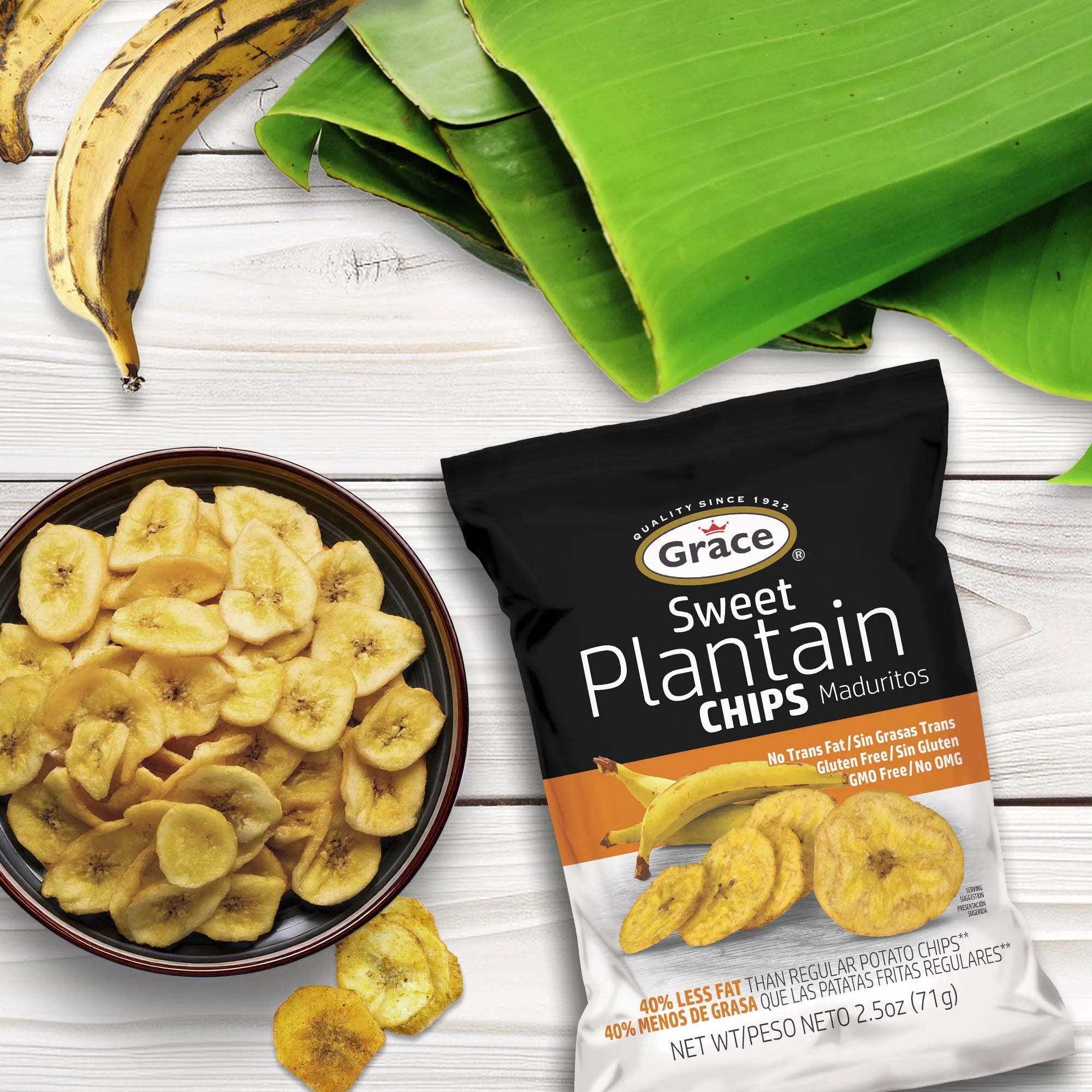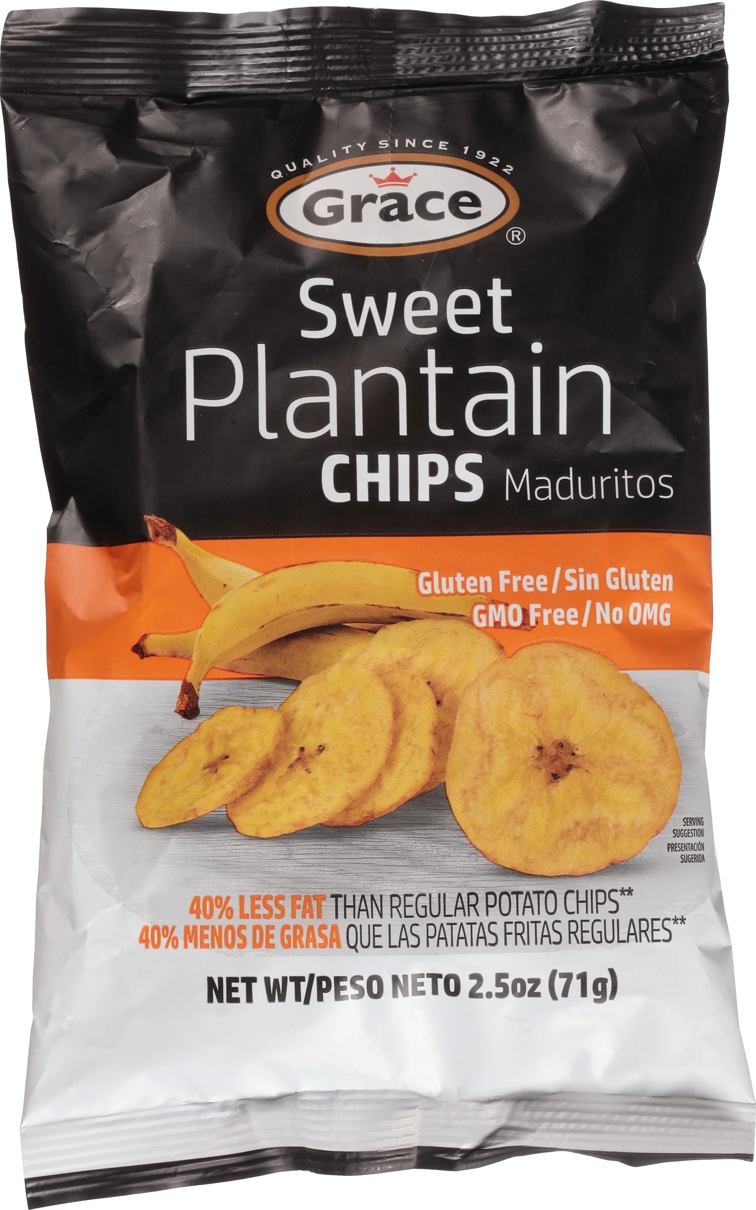 - Lower Fat Content: With 40% less fat than regular potato chips, Grace Sweet Plantain Chips provide a lighter snacking alternative with only 6g of fat per serving.