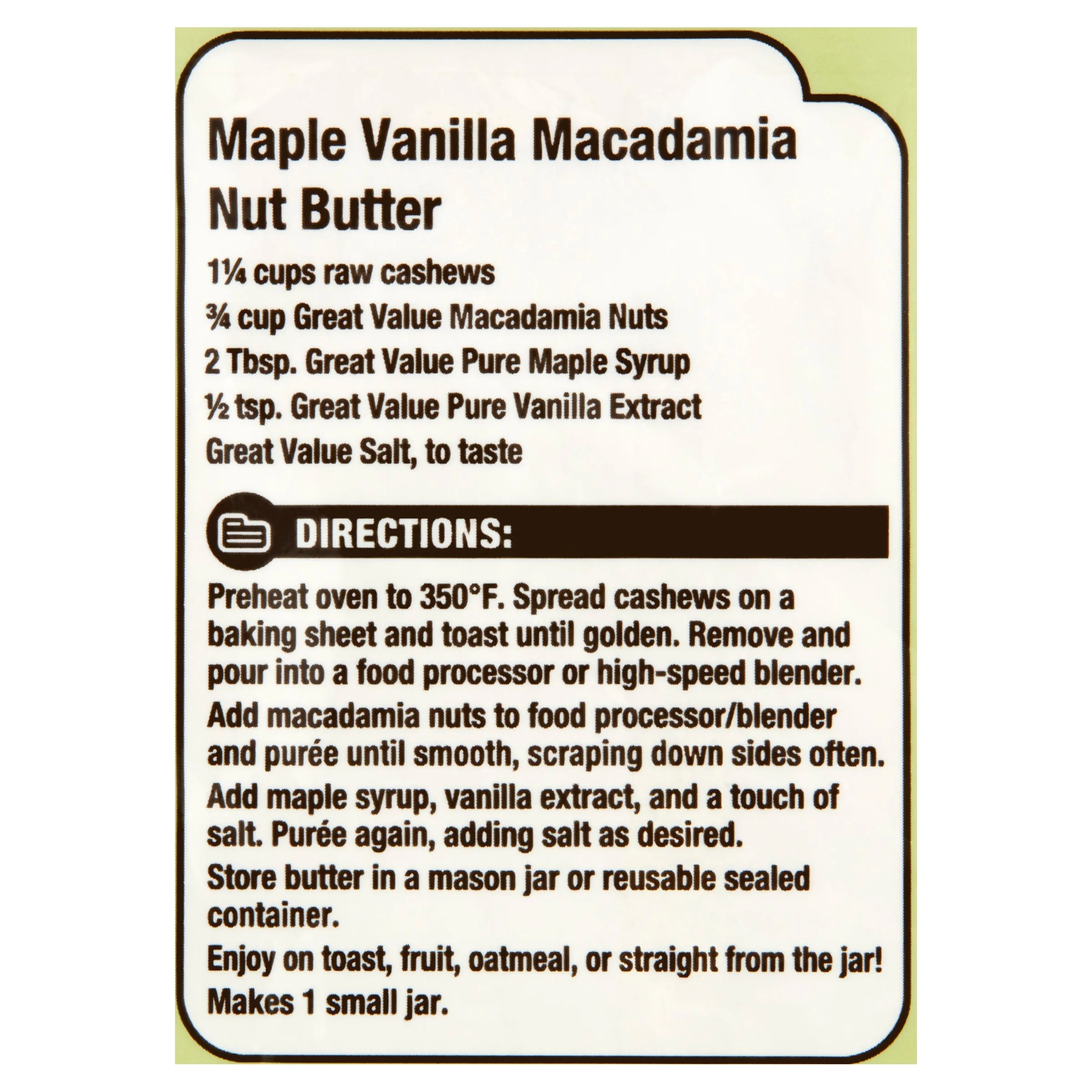 Great Value Chopped Macadamia Nuts are high-quality macadamia nuts that make for a perfect crunchy and savory snack. They are a rich source of healthy fats and proteins and make an excellent addition to your daily routine. These crunchy nuts are great for snacking and can also be used to enhance the texture and flavor of your salads and baked goods like cakes, pies, and cookies. They can also be used in your favorite trail mix and are great for topping on cereals, milkshakes and smoothies. Available in a reclosable bag, they are an excellent on-the-go snack. Bring home Great Value Chopped Macadamia Nuts today!