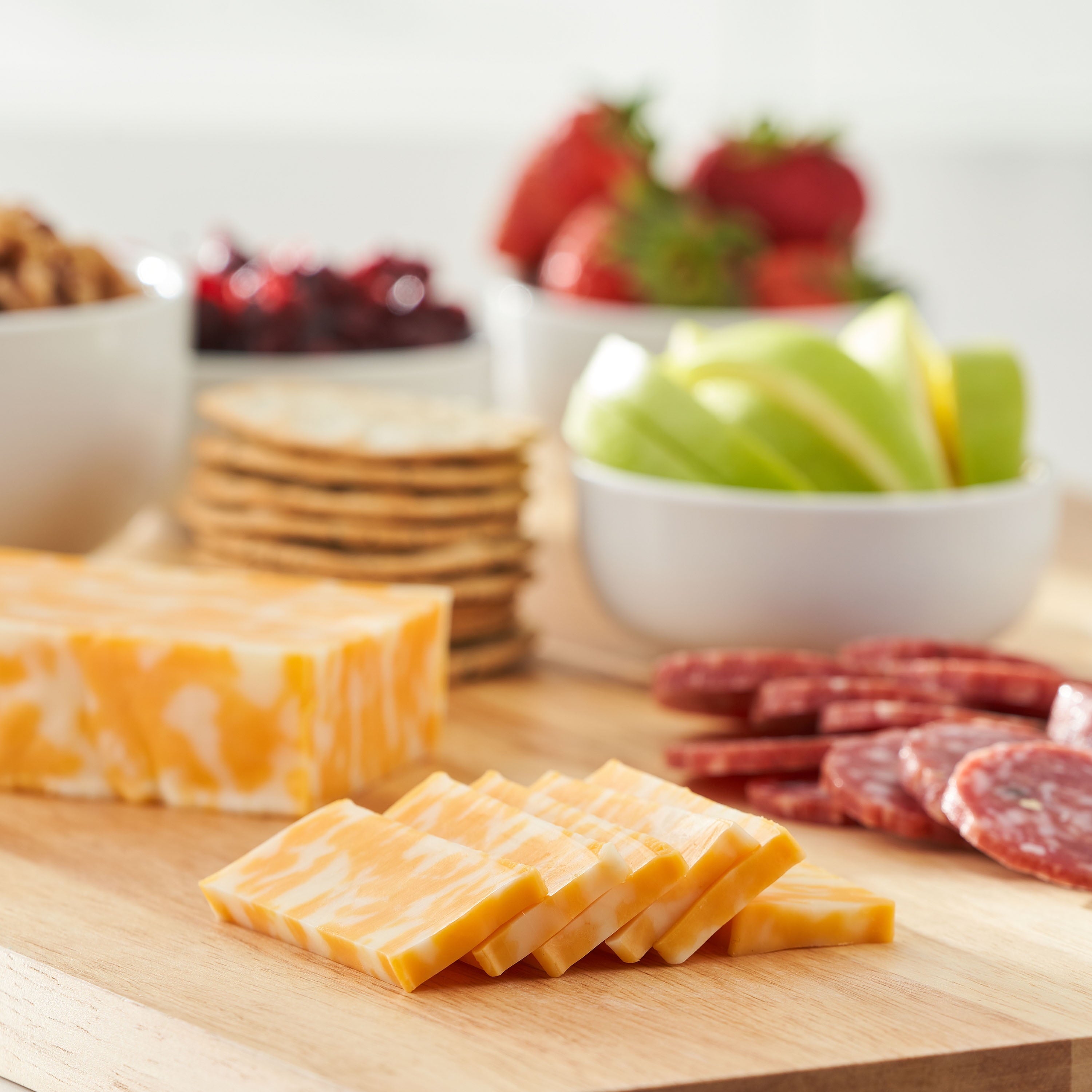 Enjoy the creamy blend of our Great Value Block Colby and Monterey Jack Cheese. Sweet, nutty Colby combines with meltable, mild Monterey jack to create a cheese that's full of flavor and utterly irresistible. Cut up some cubes to create an exceptional appetizer tray with a variety of nuts, fresh fruit, and crackers, melt some into a mouth-watering chicken quesadilla, or simply cut a few chunks off the block for some extra protein to power through your day. Savor a snack that's good and good for you with our Great Value Block Colby and Monterey Jack Cheese.