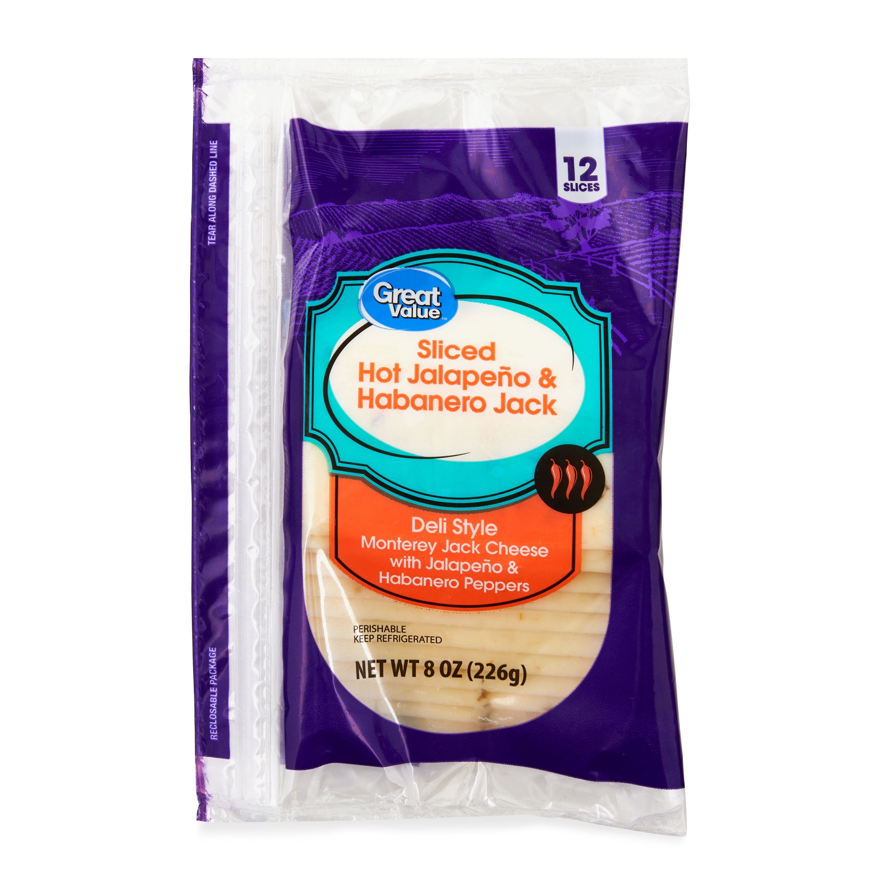 Turn up the heat with Great Value Deli Style Hot Jalapeno & Habanero Jack Cheese. These bold, spicy slices bring a fiery kick to sandwiches, burgers, and wraps, delivering a creamy texture with every bite. Infused with real jalapeno and habanero peppers, this cheese adds zesty flavor and vibrant heat to your favorite meals. The resealable packaging keeps slices fresh and ready for quick lunches or late-night snacks. Whether you’re building a spicy melt or topping nachos, this cheese brings excitement to your kitchen.