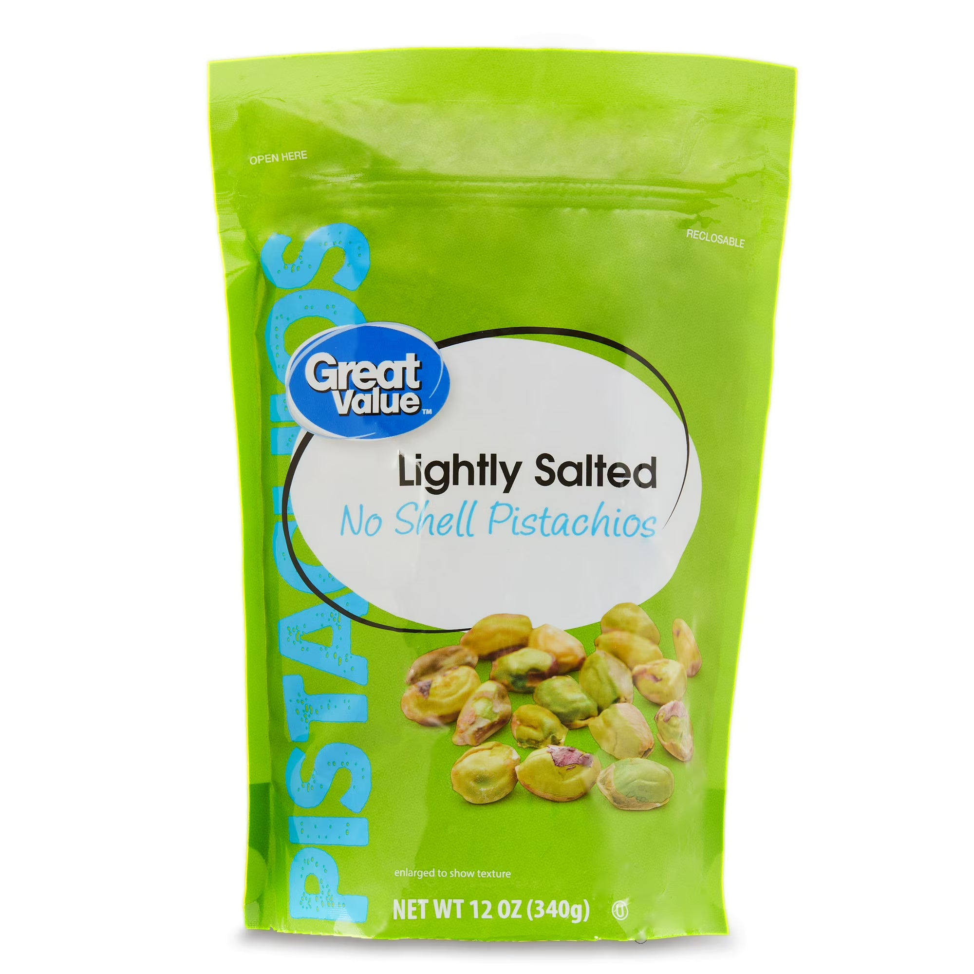 Product details Great Value Lightly Salted Pistachios are high-quality snacks from California. Lightly salted and shelled, they’re perfect for snacking,... Read more