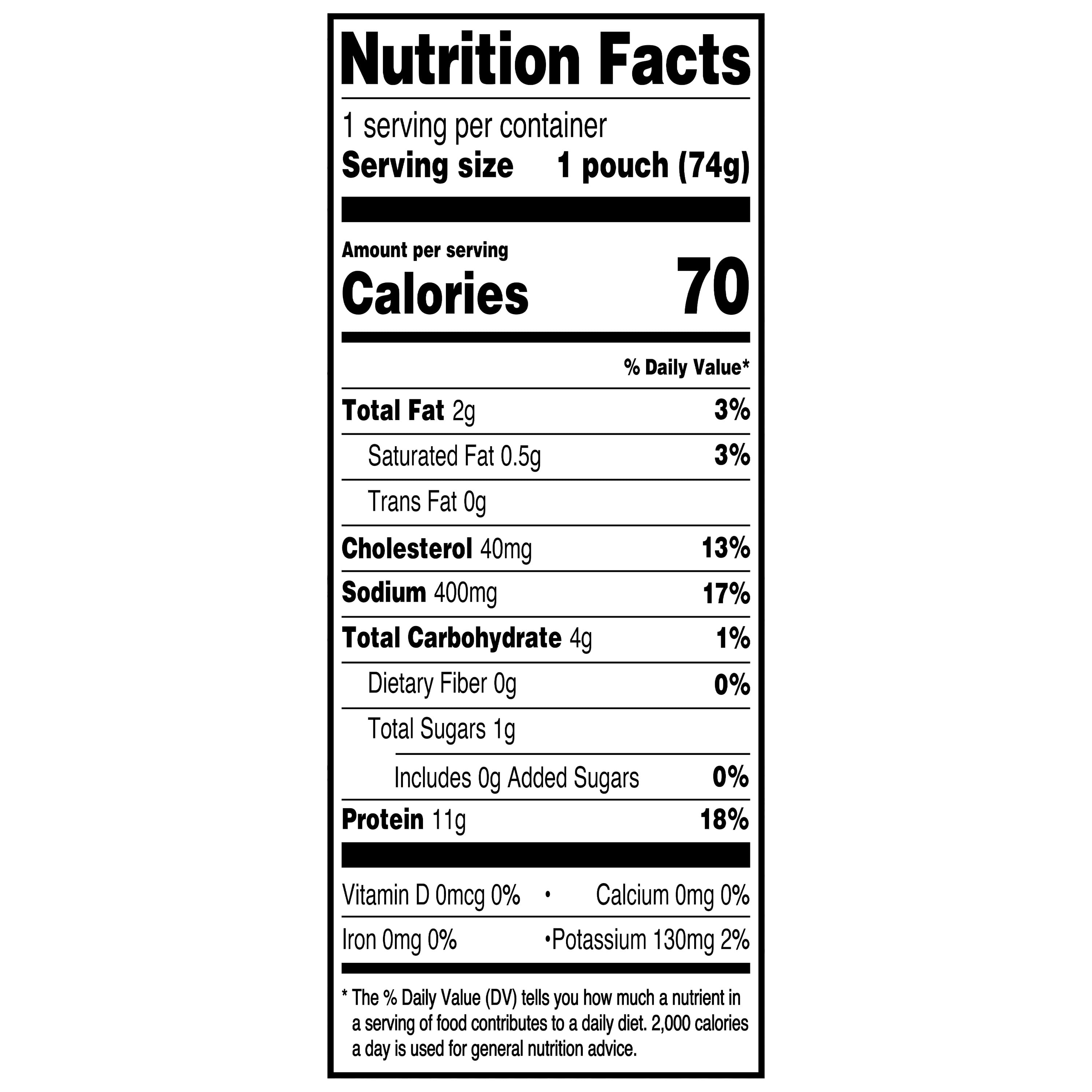 Add some delicious flavor to your next meal with this 2.6-ounce pouch of Great Value Premium White Chicken in Lemon Pepper Sauce! Each single-serving pouch is packed with fully cooked chicken that's ready to eat, has 12 grams of protein and just 70 calories. You can use this chicken on its own as an entree, or to top pastas, salads and more! Refrigerate after opening.