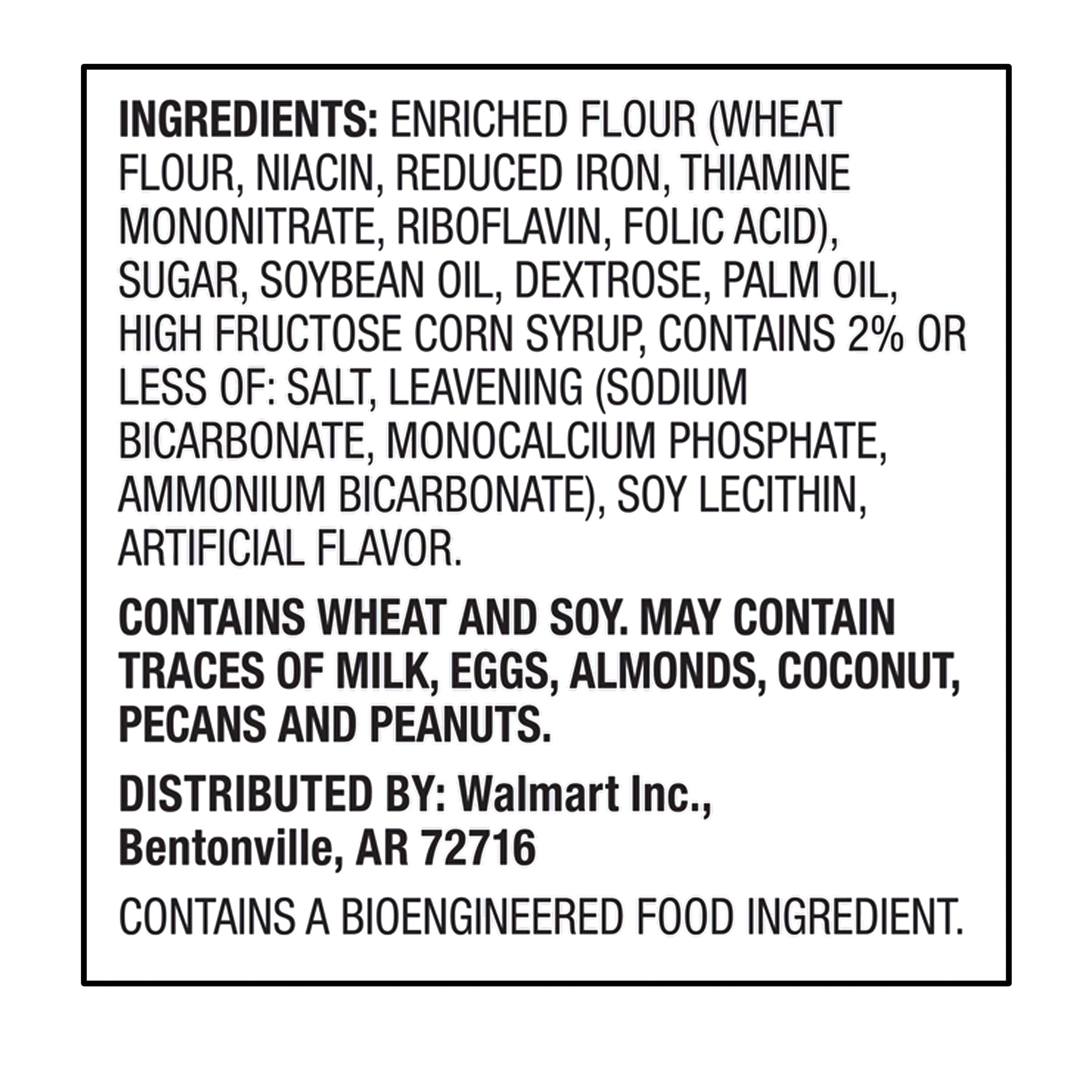UNBLEACHED ENRICHED FLOUR (WHEAT FLOUR, NIACIN, REDUCED IRON, THIAMINE MONONITRATE, RIBOFLAVIN, FOLIC ACID), SUGAR, PALM AND SOYBEAN OIL, DEXTROSE, HIGH FRUCTOSE CORN SYRUP, CORNSTARCH, LEAVENING (SODIUM BICARBONATE, MONOCALCIUM PHOSPHATE, AMMONIUM BICARBONATE), SALT, SOY LECITHIN (EMULSIFIER), ARTIFICIAL FLAVOR./div>