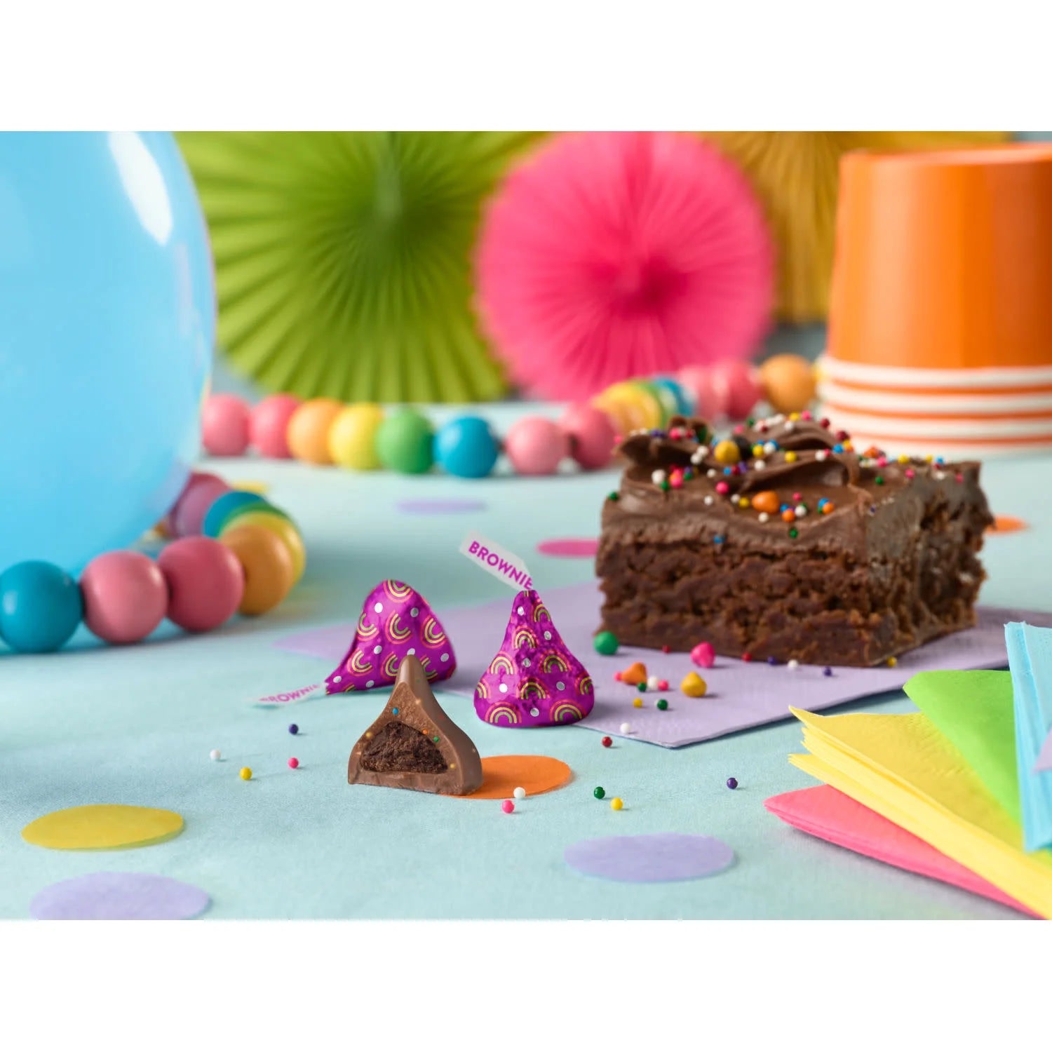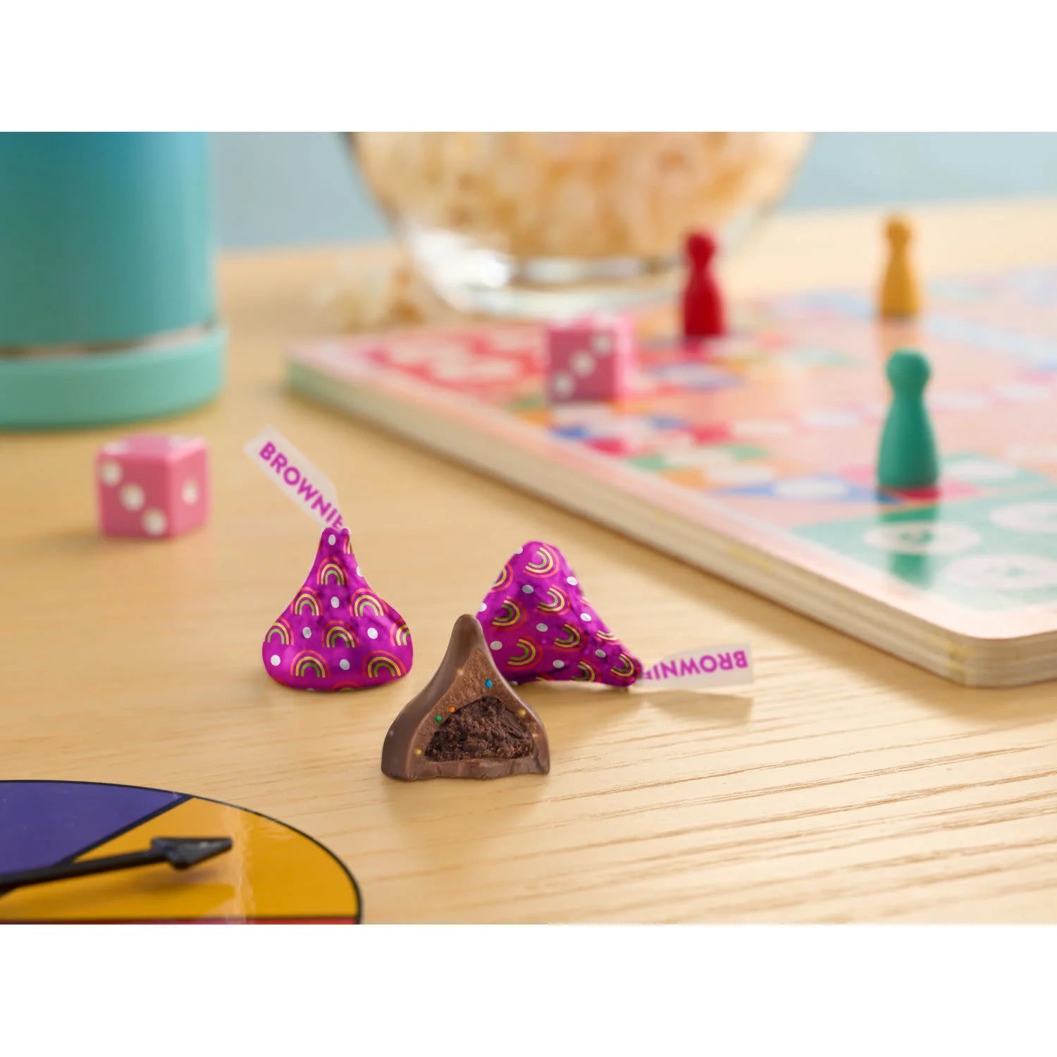 - Bring fudgy flavor and fun to your candy dishes, snack drawers and lunch boxes all season long with HERSHEY'S KISSES Rainbow Brownie flavored treats for flavorful snacking on the go