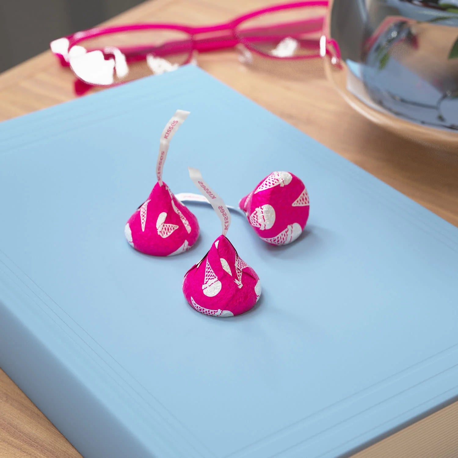 - Contains one (1) 9-ounce share pack of HERSHEY'S KISSES Strawberry Ice Cream Cone Flavored Candy