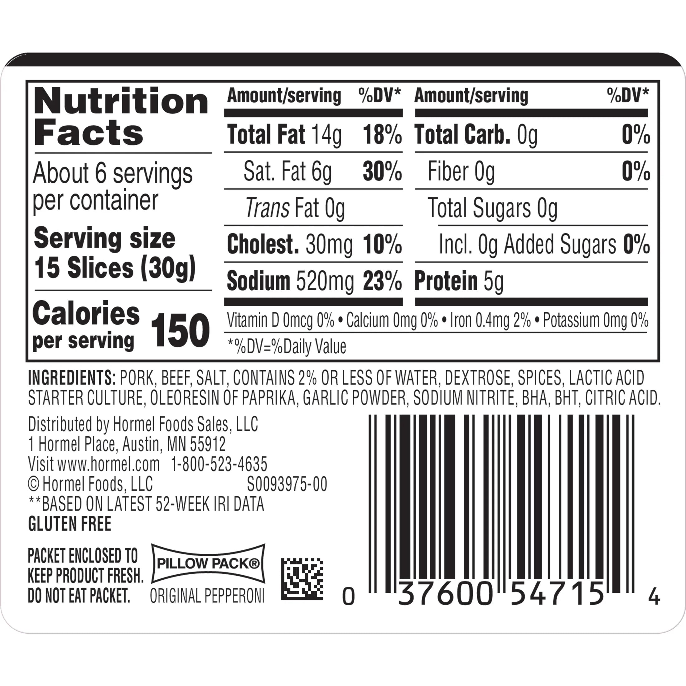 - Includes 1, 6-ounce resealable pack of ready-to-eat HORMEL Pepperoni Original; Packaged for freshness