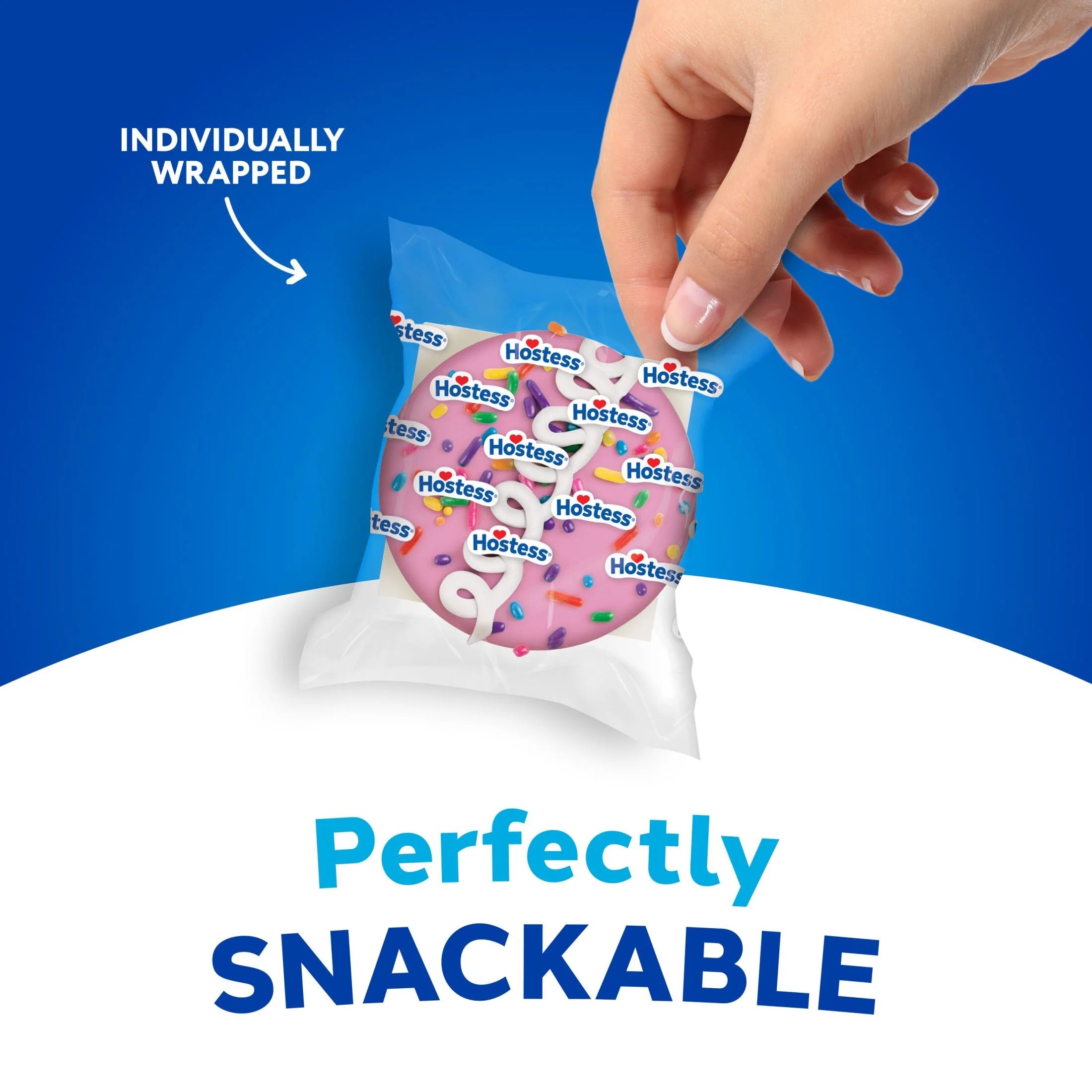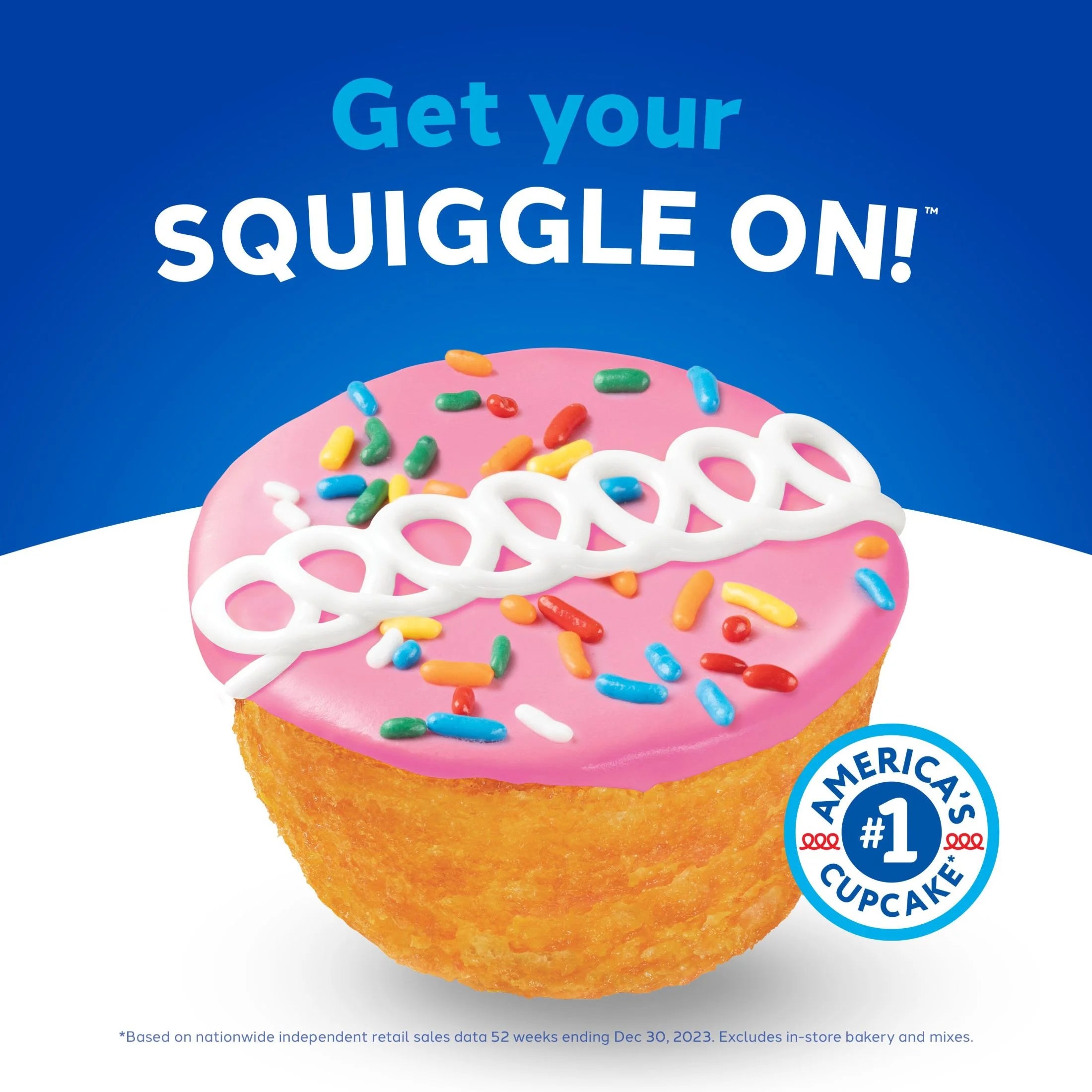 When it comes to taming your sweet tooth, Hostess Cupcakes do it best. These sweet snacks combine all the tastes and textures you crave in each irresistibly soft and light bite. Sink your teeth into the fluffy, sugar cookie flavored yellow cake (artificially flavored), topped off with pink icing, rainbow sprinkles and The Original Squiggle, our famous finishing touch. And who can forget the deliciously sweet, creamy filling in the center? It’s a hugely delicious experience that’s perfectly snackable — and packable, since each serving is individually wrapped for easy, grab-and-go convenience. Just stick ’em in your lunchbox, purse or bag, and keep happiness a snack cake away.