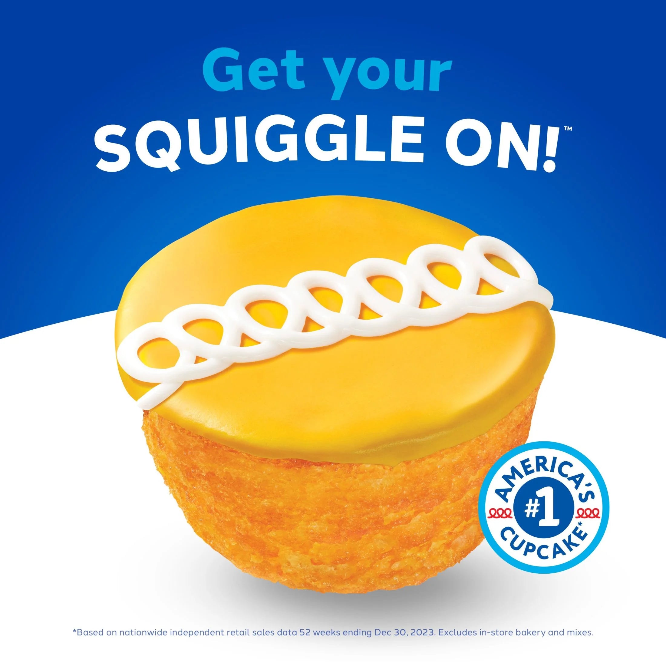 When it comes to taming your sweet tooth, Hostess Cupcakes do it best. These sweet snacks combine all the tastes and textures you crave in each irresistibly soft and light bite. Sink your teeth into the fluffy orange flavored cake, topped off with bright, flavorful icing and The Original Squiggle, our famous finishing touch. And who can forget the sweet, creamy filling in the center? It’s a hugely delicious experience that’s perfectly snackable — and packable, since each cupcake is individually wrapped for easy, grab-and-go convenience. Just stick ’em in your lunchbox, purse or bag to add a little sweetness to your day — just for kicks and squiggles.