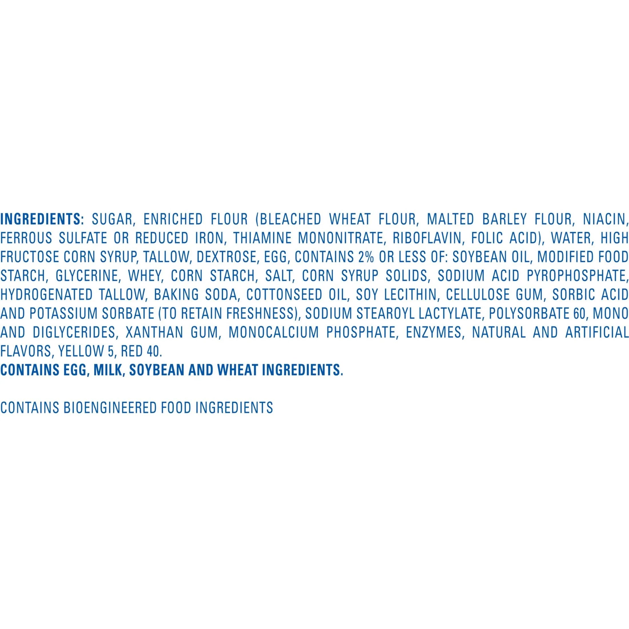 Sugar, Enriched Flour (Bleached Wheat Flour, Malted Barley Flour, Niacin, Ferrous Sulfate Or Reduced Iron, Thiamine Mononitrate, Riboflavin, Folic Acid), Water, High Fructose Corn Syrup, Tallow, Dextrose, Egg, Contains 2% Or Less Of: Soybean Oil, Modified Food Starch, Glycerine, Whey, Corn Starch, Salt, Corn Syrup Solids, Sodium Acid Pyrophosphate, Hydrogenated Tallow, Baking Soda, Cottonseed Oil, Soy Lecithin, Cellulose Gum, Sorbic Acid And Potassium Sorbate (To Retain Freshness), Sodium Stearoyl Lactylate, Polysorbate 60, Mono And Diglycerides, Xanthan Gum, Monocalcium Phosphate, Enzymes, Natural And Artificial Flavors, Yellow 5, Red 40./div>