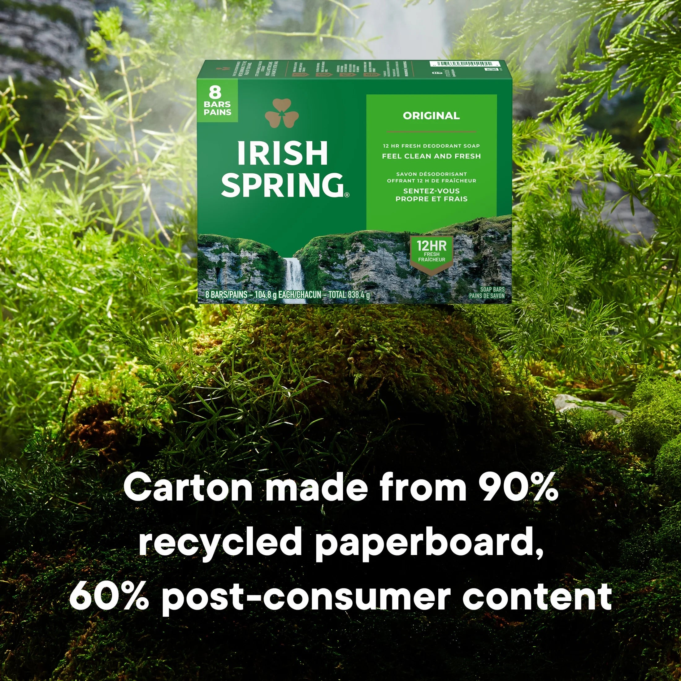 - What’s Included: Eight 3.7 oz soap bars of Irish Spring Original Deodorant Bar Soap for Men