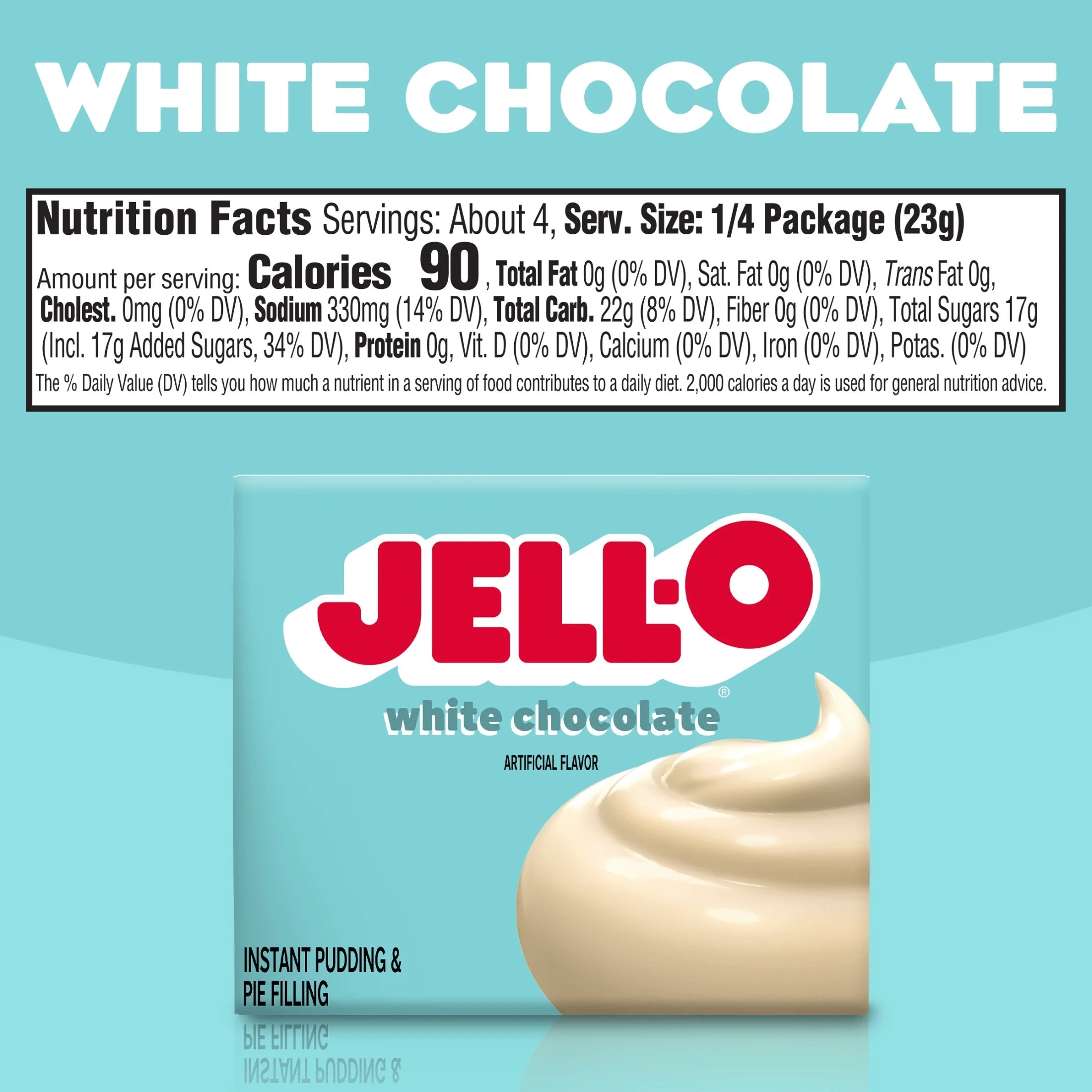 - One 3.3 oz box of Jell-O White Chocolate Artificially Flavored Instant Pudding & Pie Filling Mix