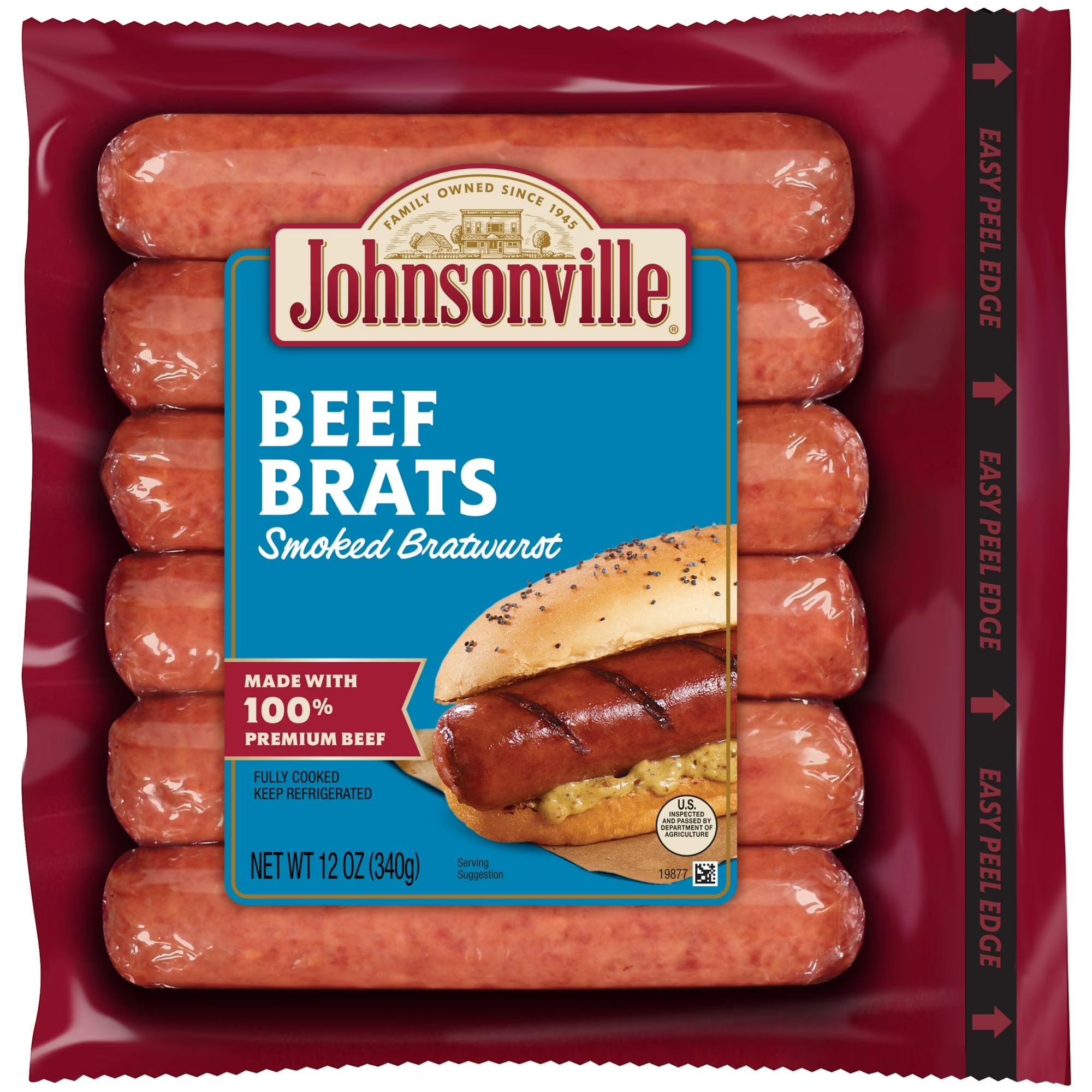 Johnsonville Smoked Beef Bratst, 6 Links, 12 oz,