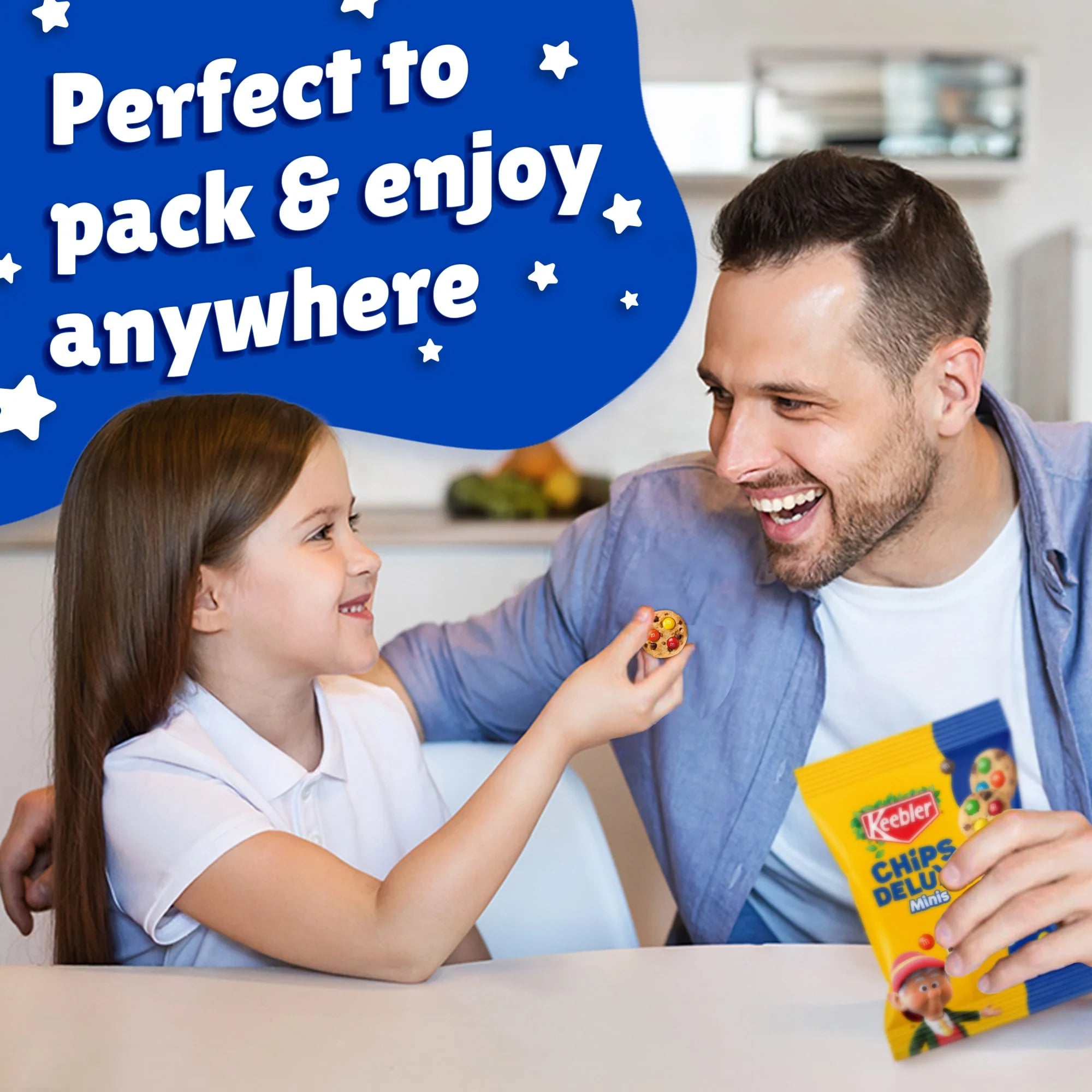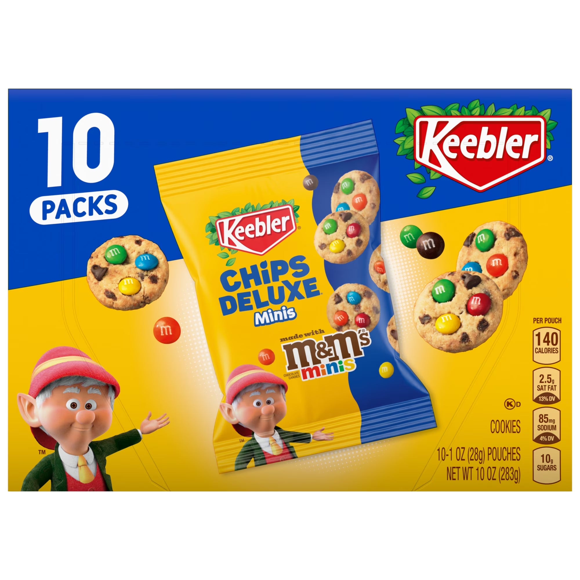 - One 10 Count package of Keebler Chips Deluxe Minis made with M&M’s, the right size for packing and enjoying anywhere