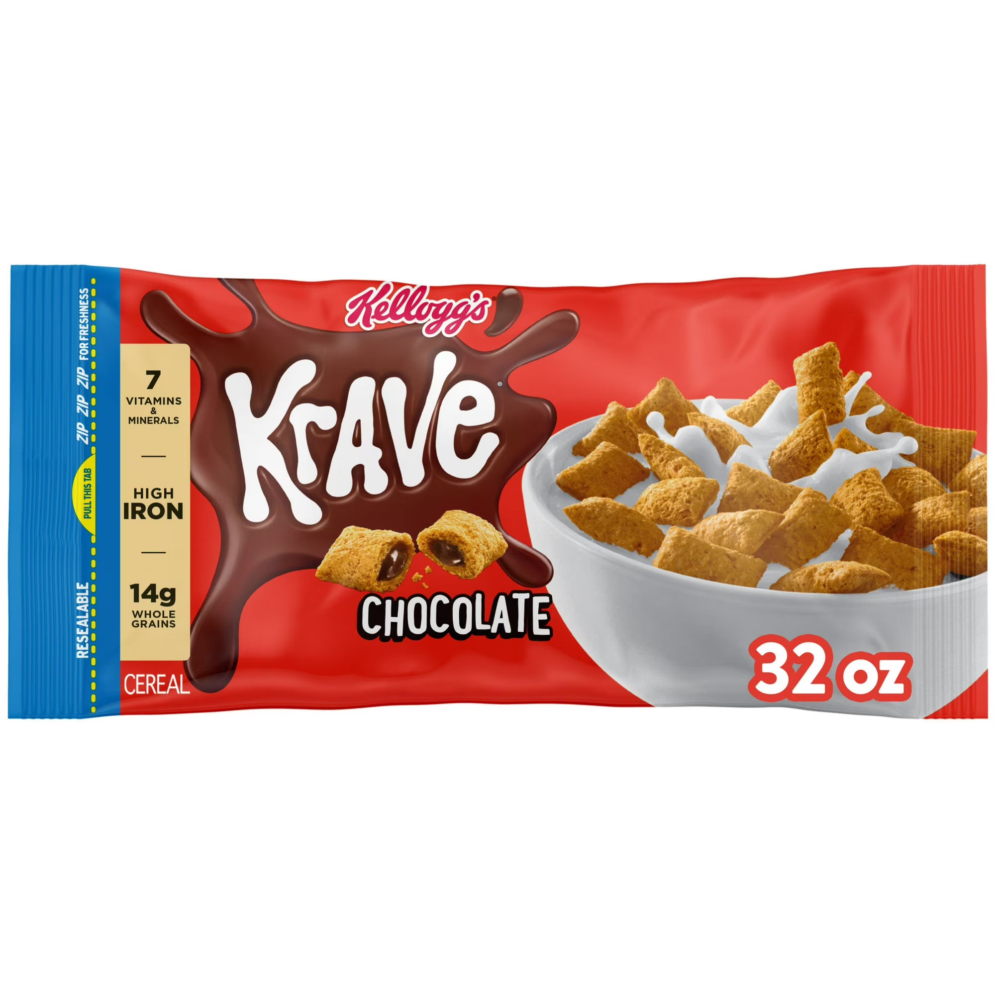 - Includes one, 32oz bag of Kellogg's Krave Chocolate breakfast cereal; Packaged for freshness and great taste