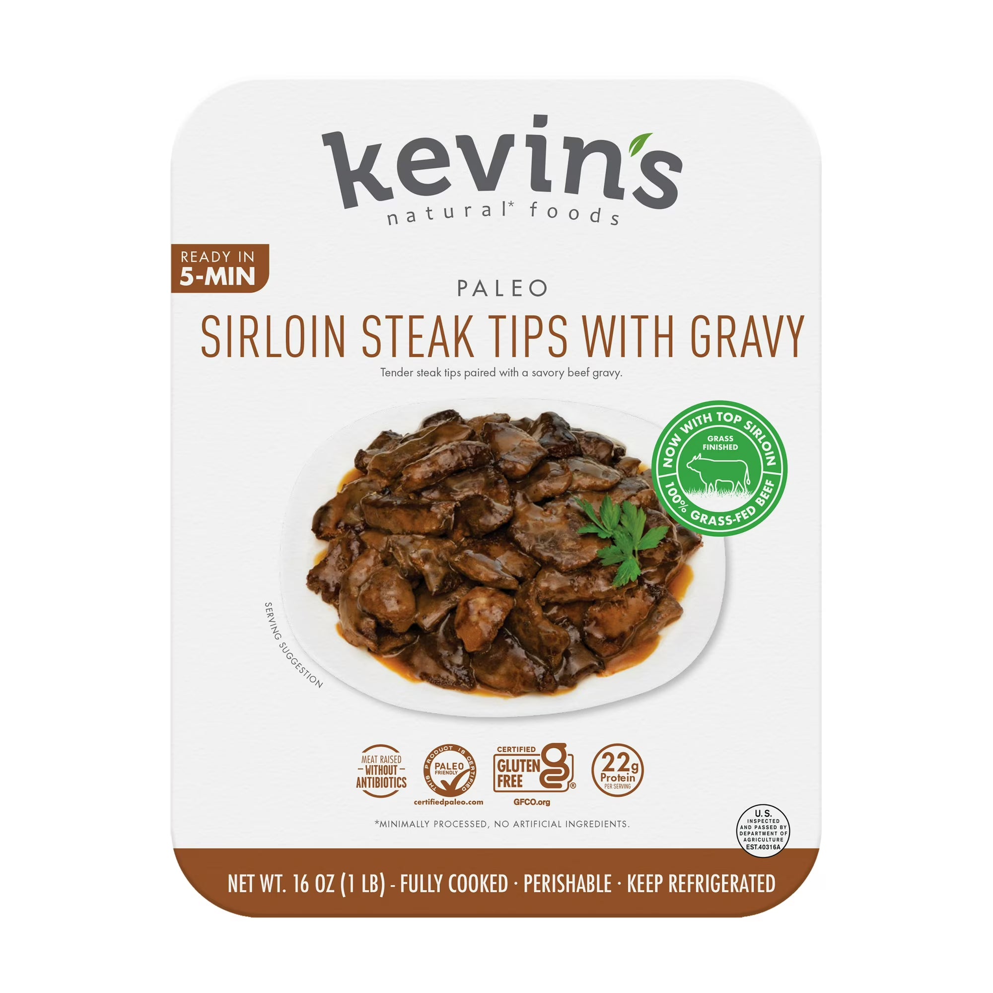 Kevin's Natural Foods Sirloin Steak Tips with Gravy, Fully Cooked Refrigerated Entree, 16 oz