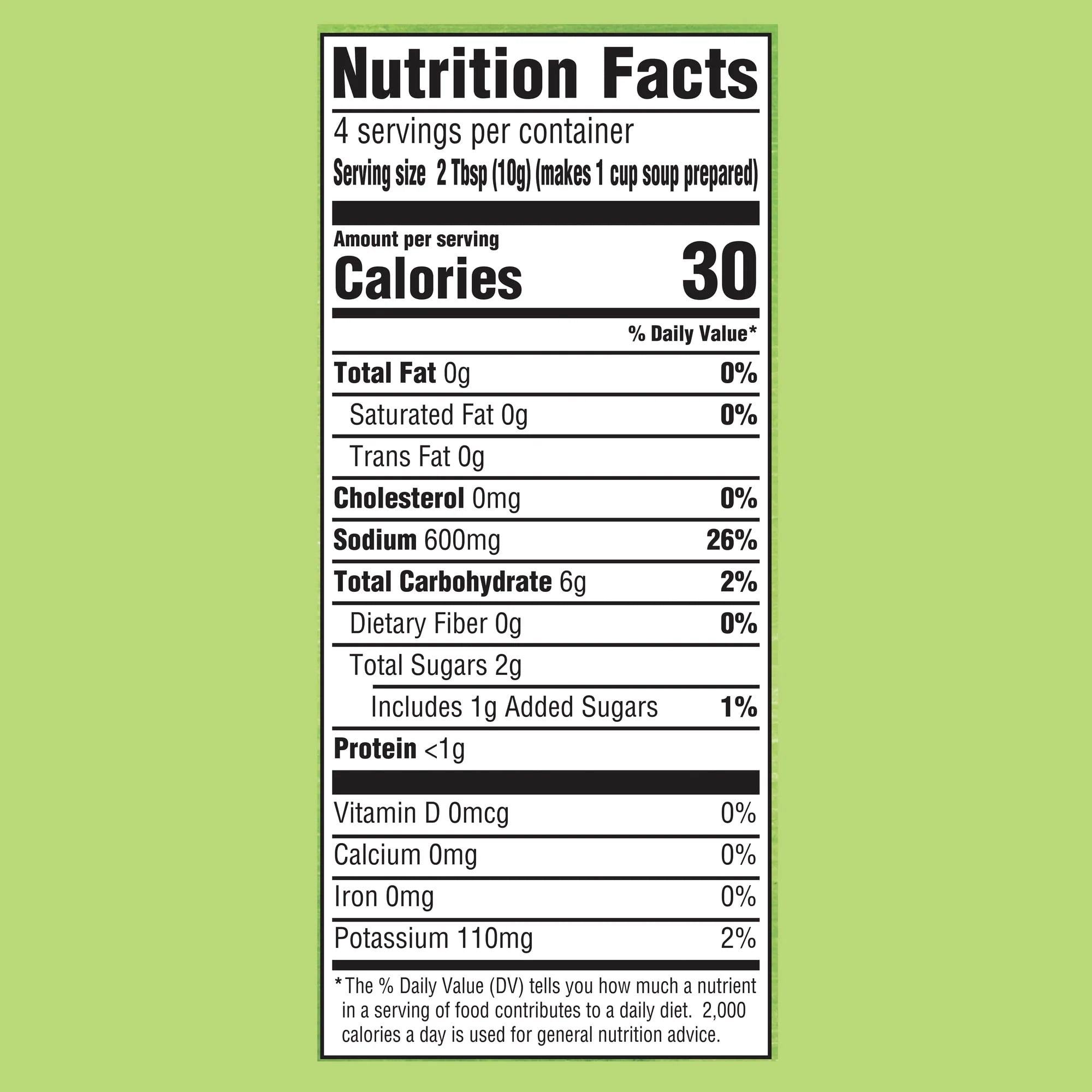 Knorr No Artificial Flavors Vegetable Recipe Soup Mix, (Shelf-Stable) adds the rich flavor of veggies to your favorite recipes. It's a simple way to make great dips like Spinach or Artichoke Dip. From meatloaf to potato leek soup, our Recipe Mixes are pantry essentials. You can enjoy this Recipe Mix as a soup mix for a savory, warming starter. Each package makes 4 cups of soup and cooks for 20 minutes. It's also ideal to use as a dip mix. Simply mix it with sour cream for a great side dish. As part of a main course, the possibilities are endless, from jazzed-up chicken breasts to homemade pizza. Knorr Recipe Mix comes in three other varieties: Leek, French Onion, and Spring Vegetable.