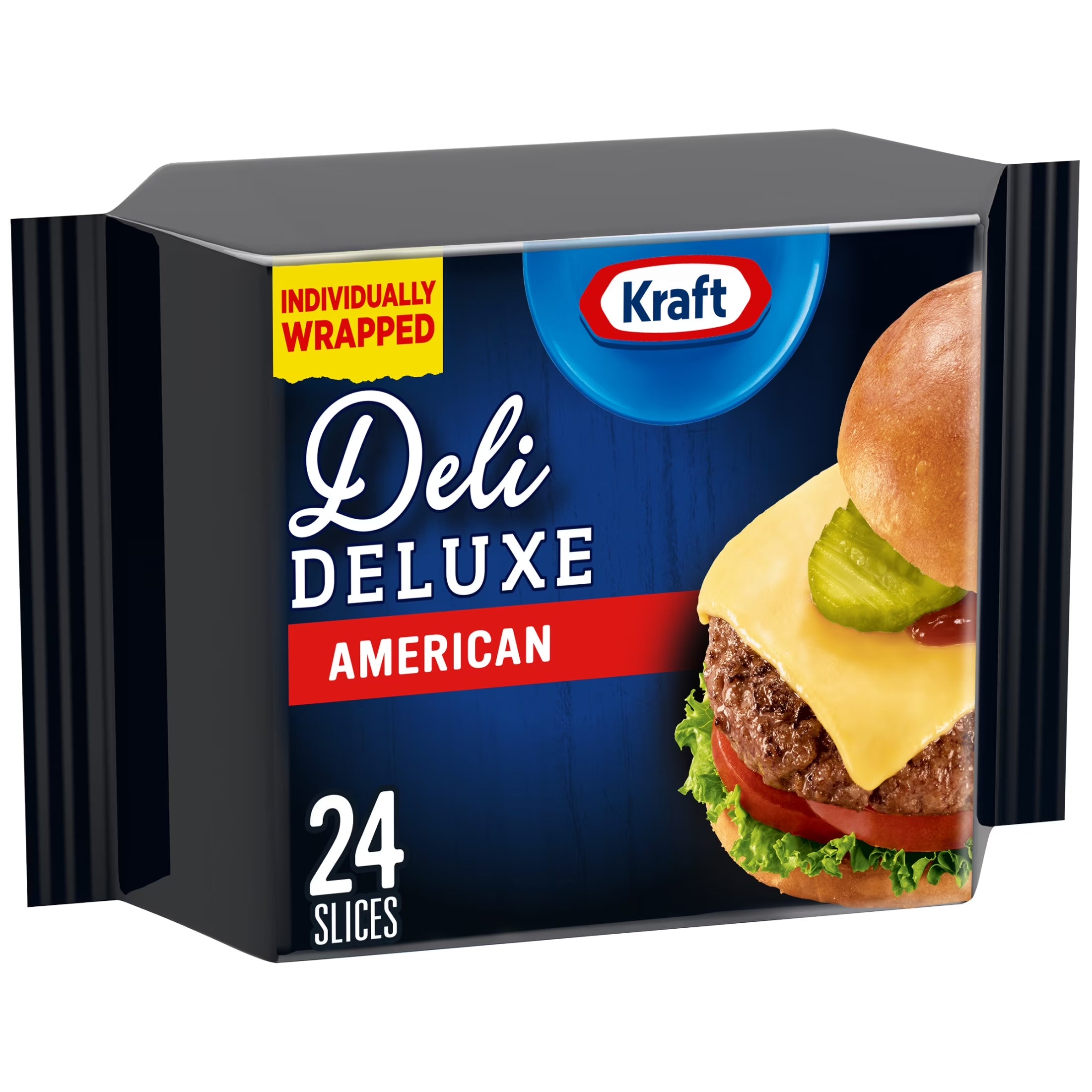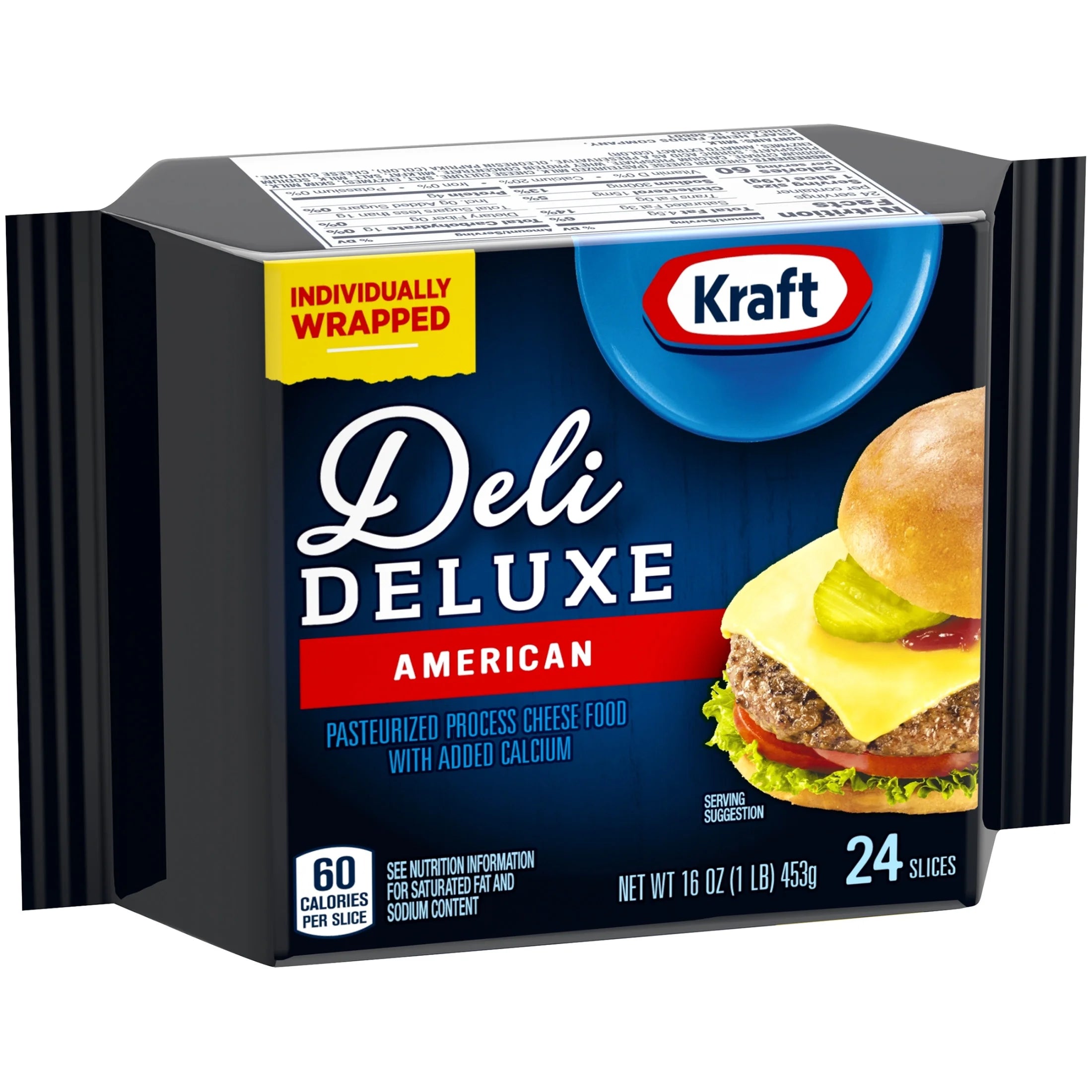 - One 16 oz pack of 24 individually wrapped Kraft Deli Deluxe American Cheese Slices