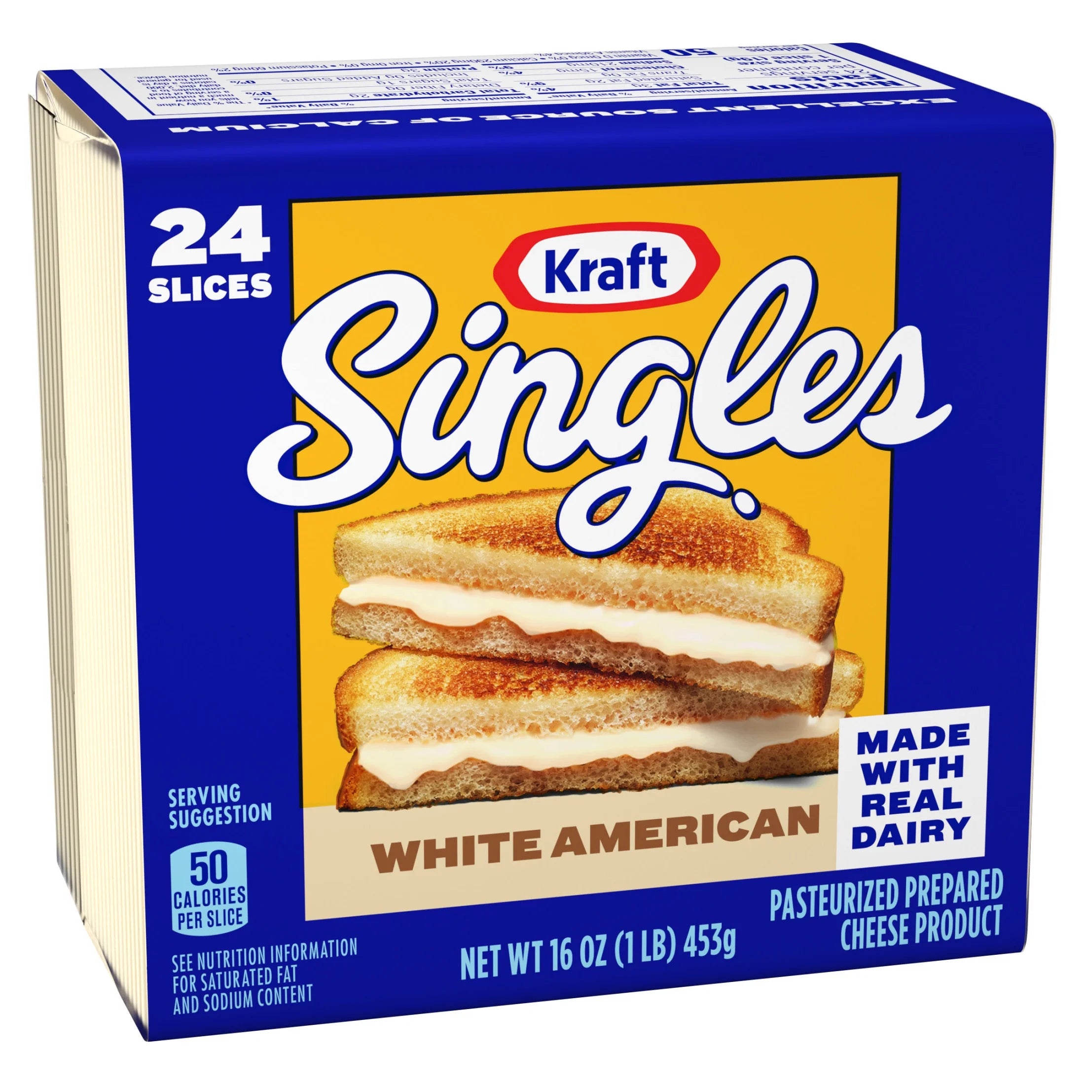 - One 24 ct pack of individually wrapped Kraft Singles White American Slices