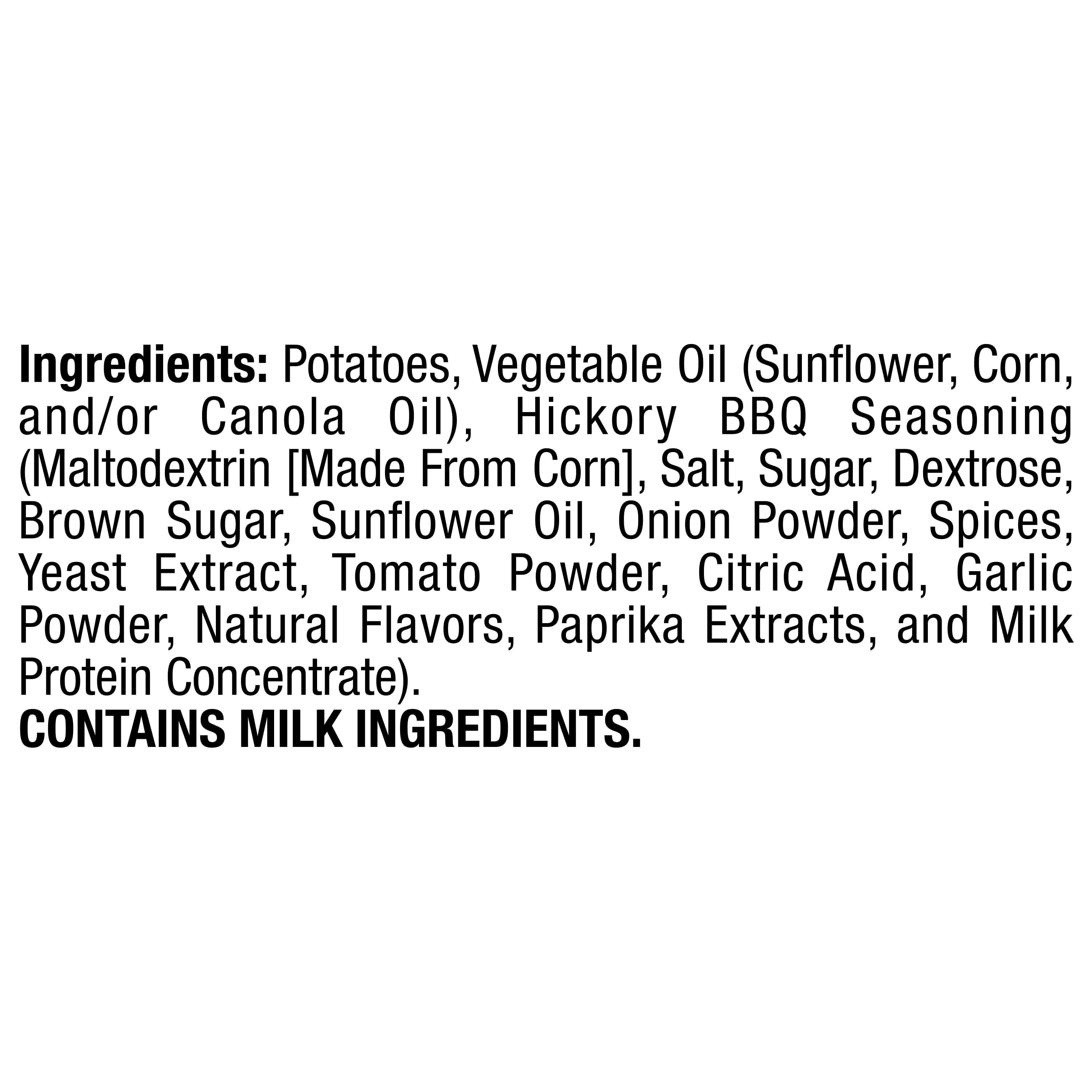 Potatoes, Vegetable Oil (Sunflower, Corn, and/or Canola Oil), Hickory BBQ Seasoning (Maltodextrin [Made From Corn], Salt, Sugar, Dextrose, Brown Sugar, Sunflower Oil, Onion Powder, Spices, Yeast Extract, Tomato Powder, Citric Acid, Garlic Powder, Natural Flavors, Paprika Extracts, and Milk Protein Concentrate). CONTAINS MILK INGREDIENTS./div>