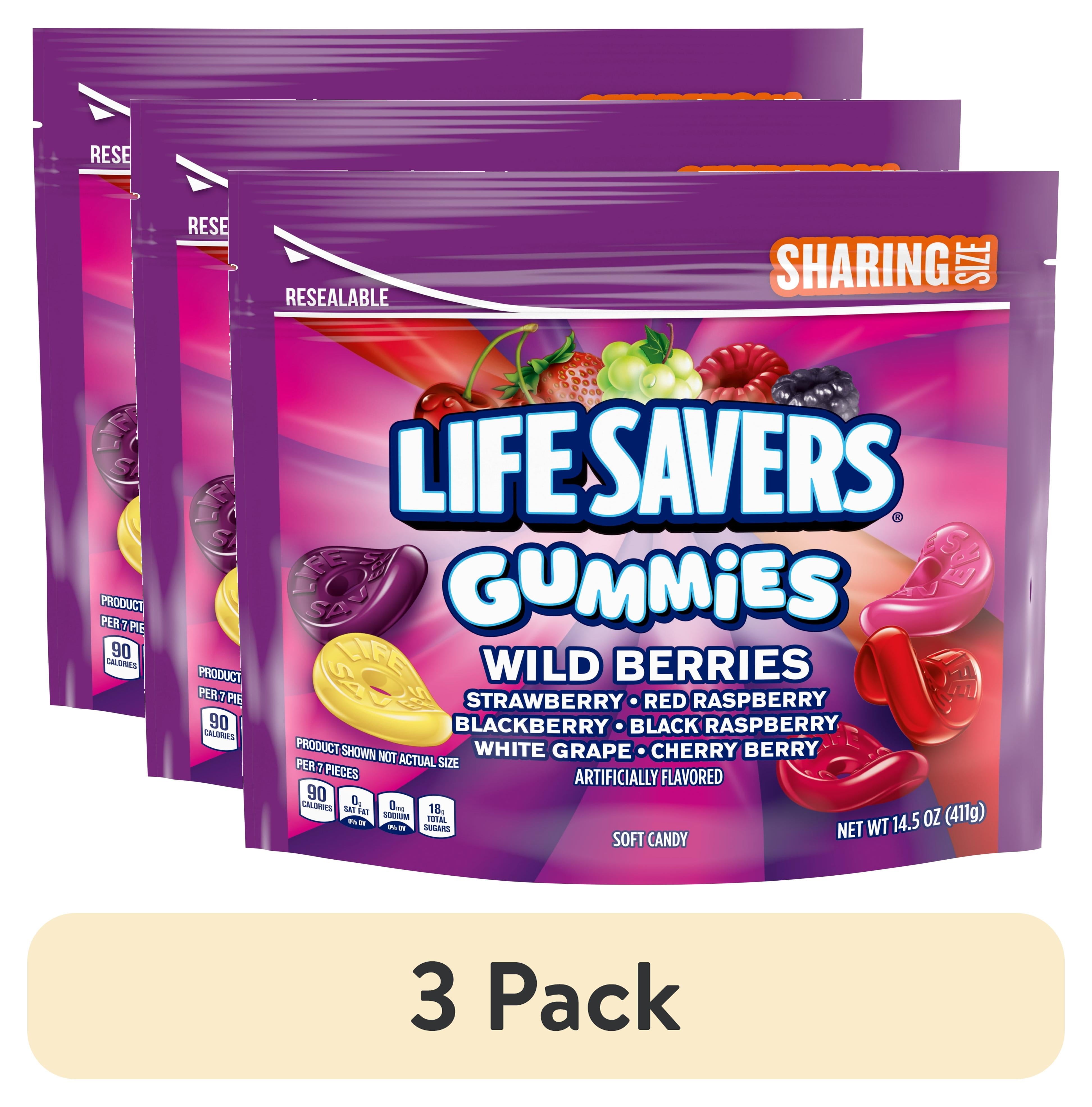 Get ready for a hole-lot of fun with our LIFE SAVERS Wildberries Gummies Candy. These soft and chewy berry flavored treats are the berry-best! This assorted candy bag contains the delicious fruit flavors of strawberry, red raspberry, blackberry, black raspberry, white grape, and cherry berry. No need to wait for the summer for these to be in season! Your guests will love it when you stock your candy buffets and favor bags with LIFE SAVERS Wildberries Gummies chewy fruit candy. Need a midday pick me up? When you share a handful of fruity LIFE SAVERS at the office, you'll be everyone's favorite coworker. Before you press play at your next family movie night, be sure to stop by the pantry to pick up this fruit gummy treat! Because when you pass around a bag of LIFE SAVERS, everyone's happy!Add LIFE SAVERS Wildberries Gummies Candy assortment to your cart today!