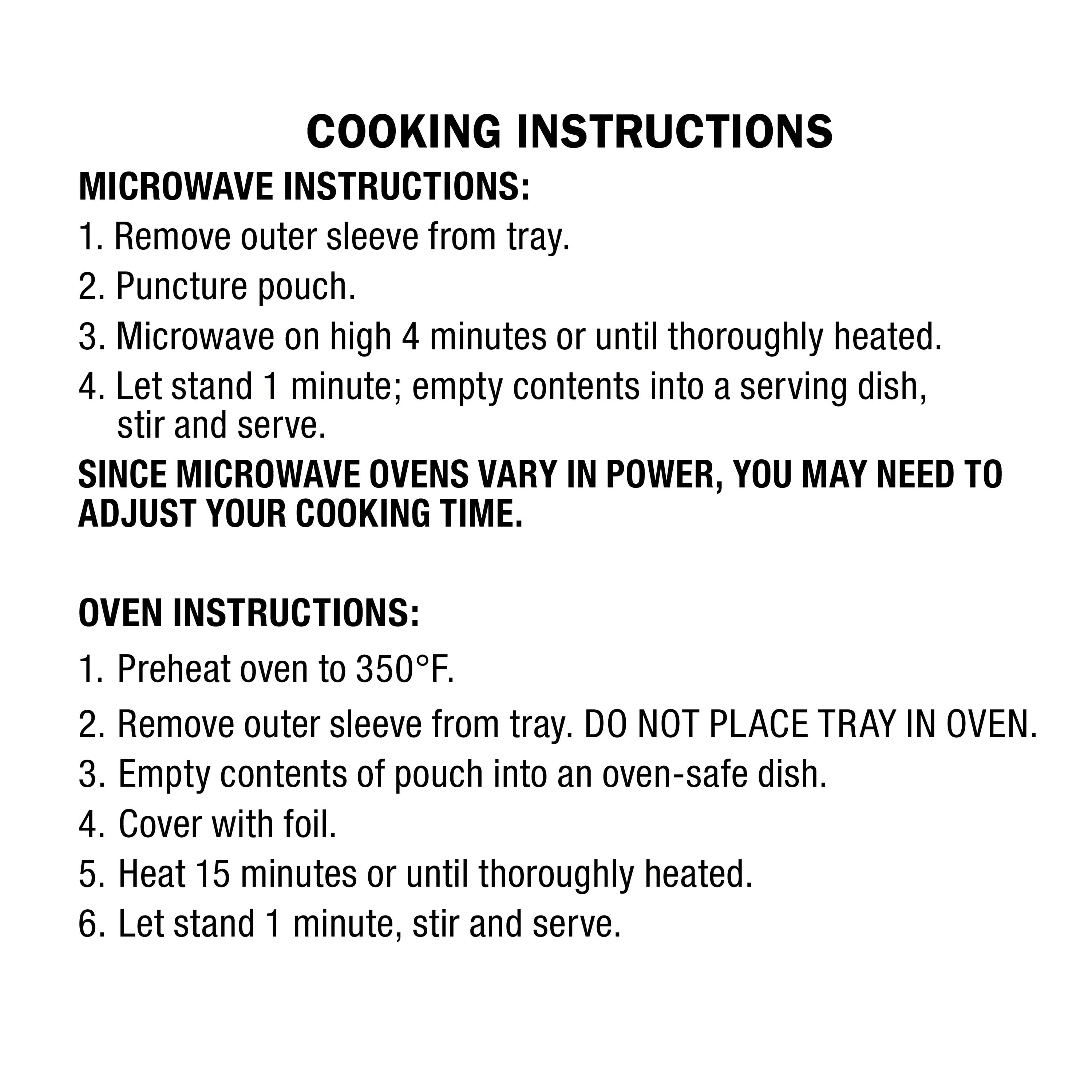 - Fully cooked and ready to heat and eat