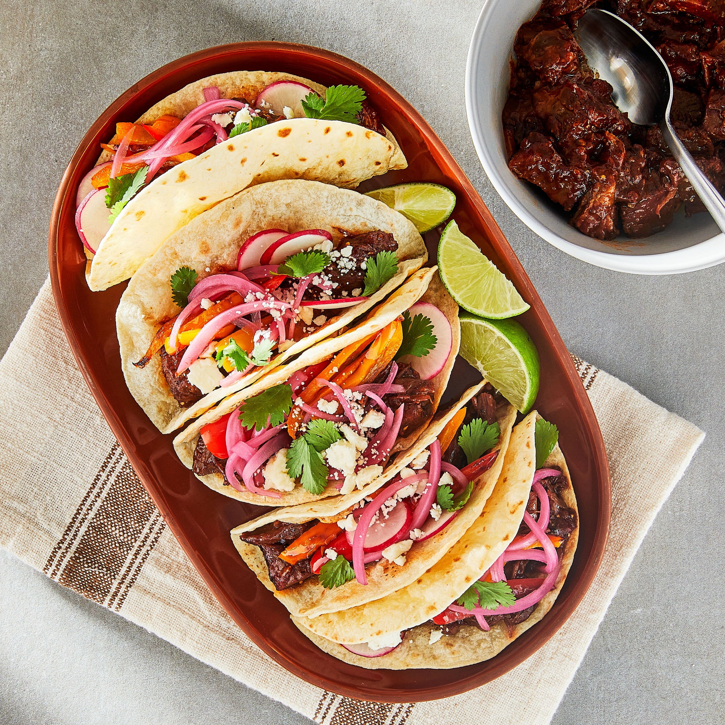- Slow-smoked seasoned beef brisket bathed in a sweet and smoky BBQ sauce