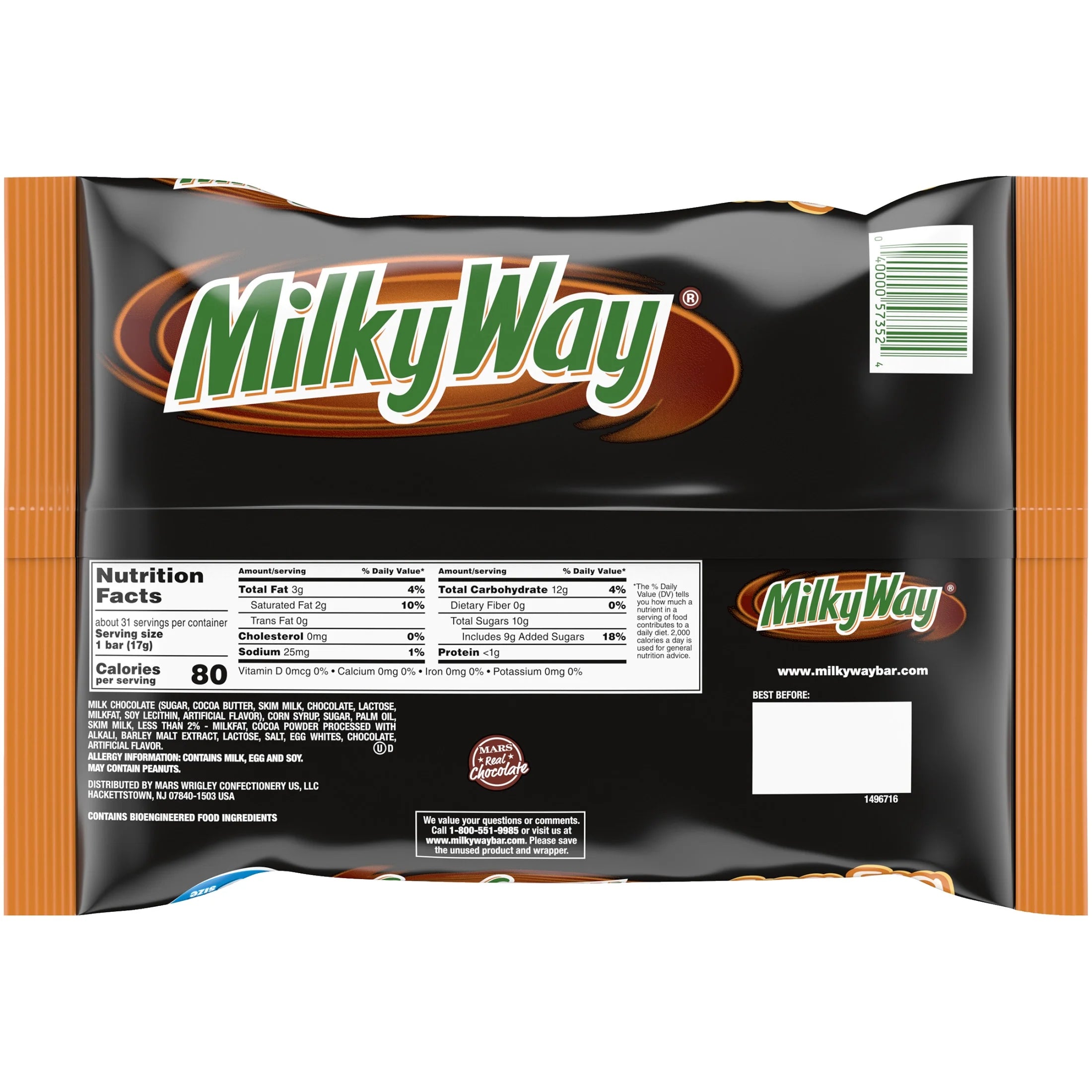 For a deliciously distracting, bite-sized chocolate and caramel treat, look no further than MILKY WAY. Perfect for snacking and sharing at home or on-the-go, or incorporated into your favorite dessert recipes, MILKY WAY Fun Size Bars are the same brand you love with creamy caramel, smooth nougat and rich milk chocolate, but in a deliciously distracting smaller portion. So Many Ways to Savor. At home or in the office, your candy dish will be a hit with MILKY WAY Fun Size Snack and share at home or on-the-go, or incorporate MILKY WAY Fun Size into your favorite dessert recipes. Give the gift of MILKY WAY to the chocolate lover in your life. This bulk amount of delicious, assorted chocolate candy is your one-stop-shop for Halloween candy! Best of all, individually wrapped bulk candy means everyone stays safe from germs and your candy stays fresh longer! If you DO end up with leftovers, connect with us for some deliciously inspiring recipes!