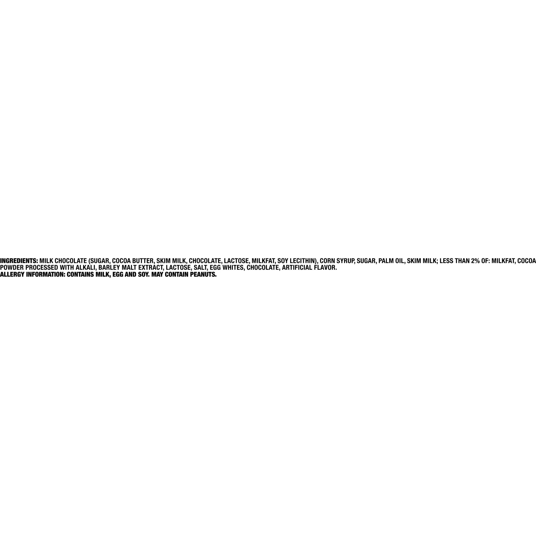 INGREDIENTS: MILK CHOCOLATE (SUGAR, COCOA BUTTER, SKIM MILK, CHOCOLATE, LACTOSE, MILKFAT, SOY LECITHIN), CORN SYRUP, SUGAR, PALM OIL, SKIM MILK; LESS THAN 2% OF: MILKFAT, COCOA POWDER PROCESSED WITH ALKALI, BARLEY MALT EXTRACT, LACTOSE, SALT, EGG WHITES, CHOCOLATE, ARTIFICIAL FLAVOR./div>