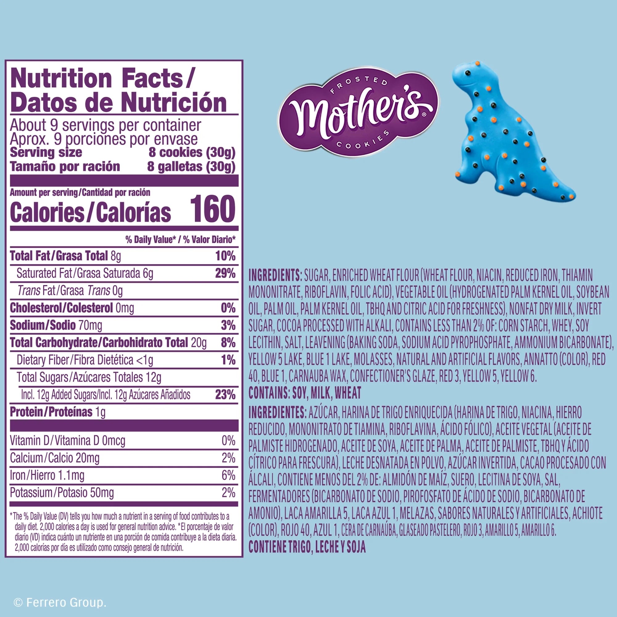 Step into a world of fun and flavor with Mother's Chocolatey Dynamite Dinosaurs Cookies, inspired by Jurassic World. Each blue and green frosted cookie is shaped like the fierce yet fun dinosaurs that excite fans, including Pteranodon, Tyrannosaurus Rex, Brachiosaurus, and Triceratops. Whether you’re adding them to a lunchbox, packing them for a family road trip, or sharing them at a party, these cookies are the perfect combination for delivering a roaring good time with every bite. This convenient resealable bag keeps the sweet treats fresh, making them ideal for on-the-go moments or fun breaks. Enjoy a delicious, chocolatey flavor in every bite, and turn treat time into play time. Stock up for all your favorite occasions. These chocolatey cookies are perfect for school treats, birthday parties, or as a fun addition to family time. Add them to holiday gift baskets or share them at seasonal celebrations for a delightful surprise. Live life playfully with Mother's Frosted Animal Cookies, making treat time fun and letting your tastebuds ROAR with Mother’s Chocolatey Dynamite Dinosaurs Cookies—a treat everyone will love!