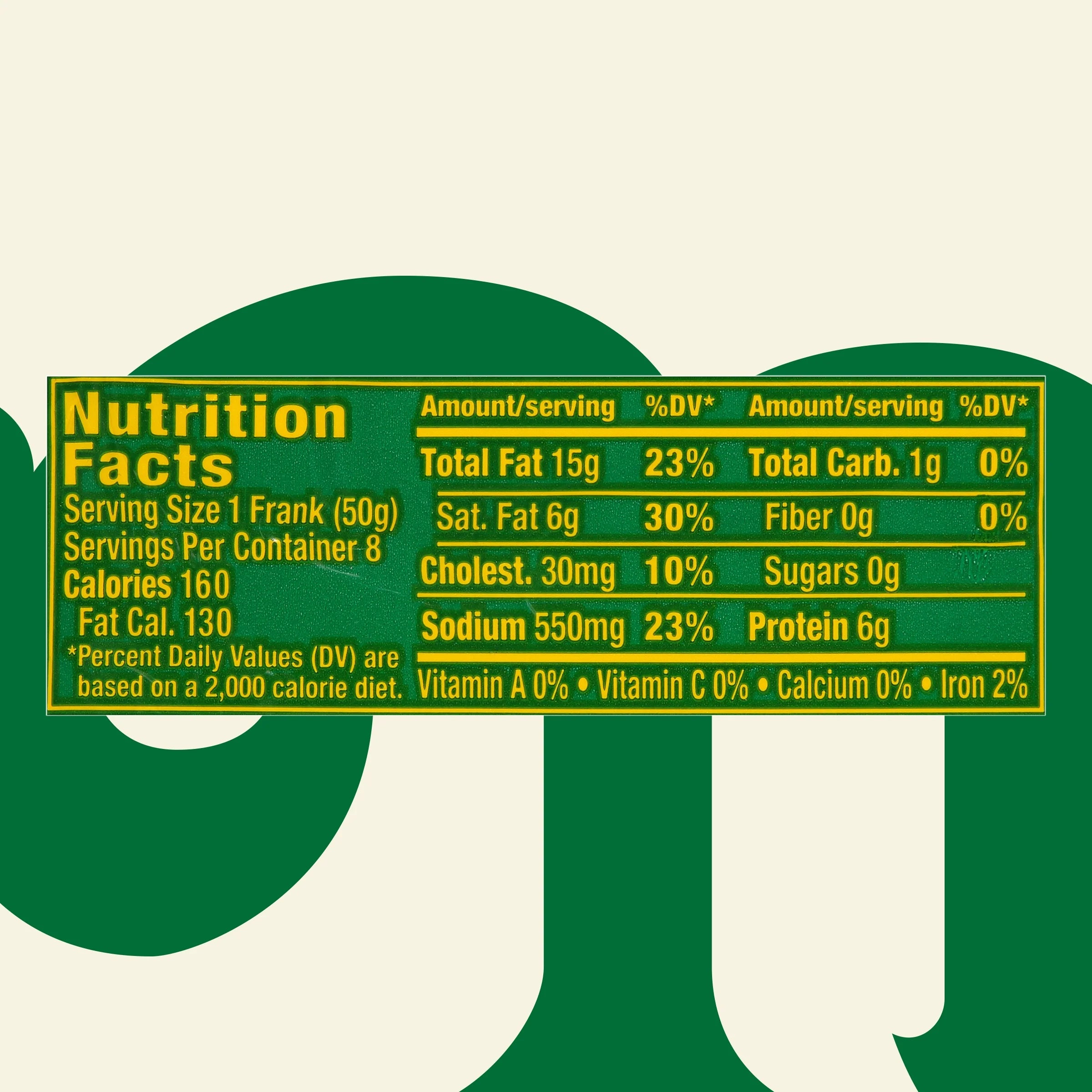 - These all-beef franks contain no artificial flavors or colors, fillers, by-products, corn syrup with 6g of protein per serving