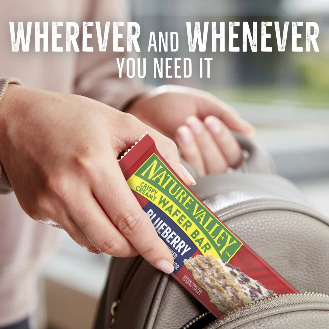 - CONTAINS: One regular cardboard box of Nature Valley Crispy Creamy Wafer Bars, Blueberry, 5 bars, 6.5 oz; Perfect for instant snacking