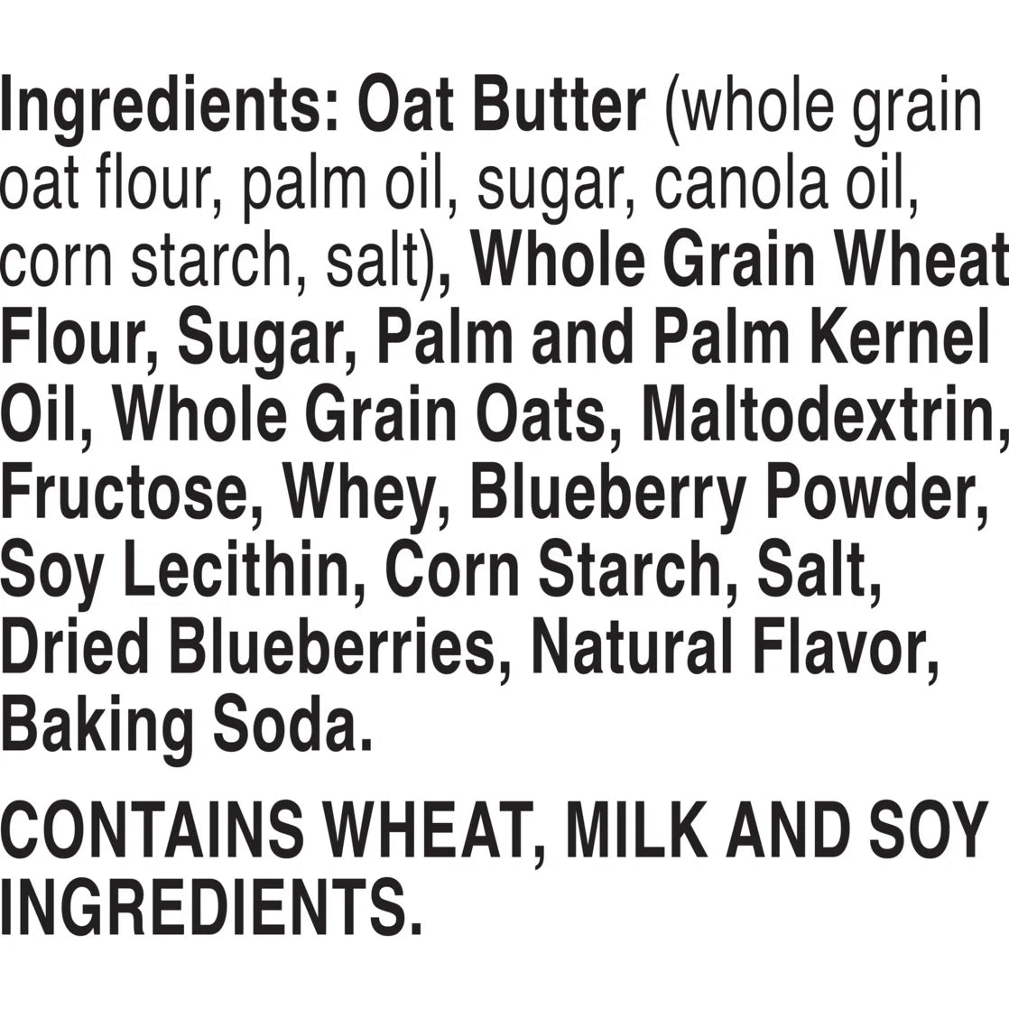 Oat Butter (whole grain oat flour, palm oil, sugar, canola oil, corn starch, salt), Whole Grain Wheat Flour, Sugar, Palm and Palm Kernel Oil, Whole Grain Oats, Maltodextrin, Fructose, Whey, Blueberry Powder, Soy Lecithin, Corn Starch, Salt, Dried Blueberries, Natural Flavor, Baking Soda./div>