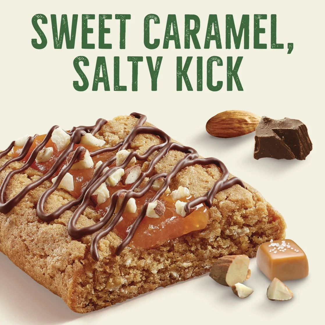 Take scrumptious soft baked goodness to go with Nature Valley Soft Baked Sweet and Salty Bars in Salted Caramel with almonds and chocolate flavor. Each on the go snack bar brings the indulgent taste you've been craving. They're made with 12g of whole grain per serving (at least 48g recommended daily), and there are no artificial flavors, no artificial colors, and no high fructose corn syrup. Stock your pantry for your morning commute, a lunch box treat, or the hiking trail. The perfect balance of sweet chocolate and salted caramel flavors, plus savory nuts, make these a delightful snack for kids and adults alike. At Nature Valley, we believe that what you put in is what you get out. So wherever the moment takes you and your family, you can rely on our great tasting snacks to help keep you going. Contains one regular cardboard box of Nature Valley Sweet and Salty Soft Baked Bars, Salted Caramel, 5 Ct, 6.2 oz; perfect for instant snacking.